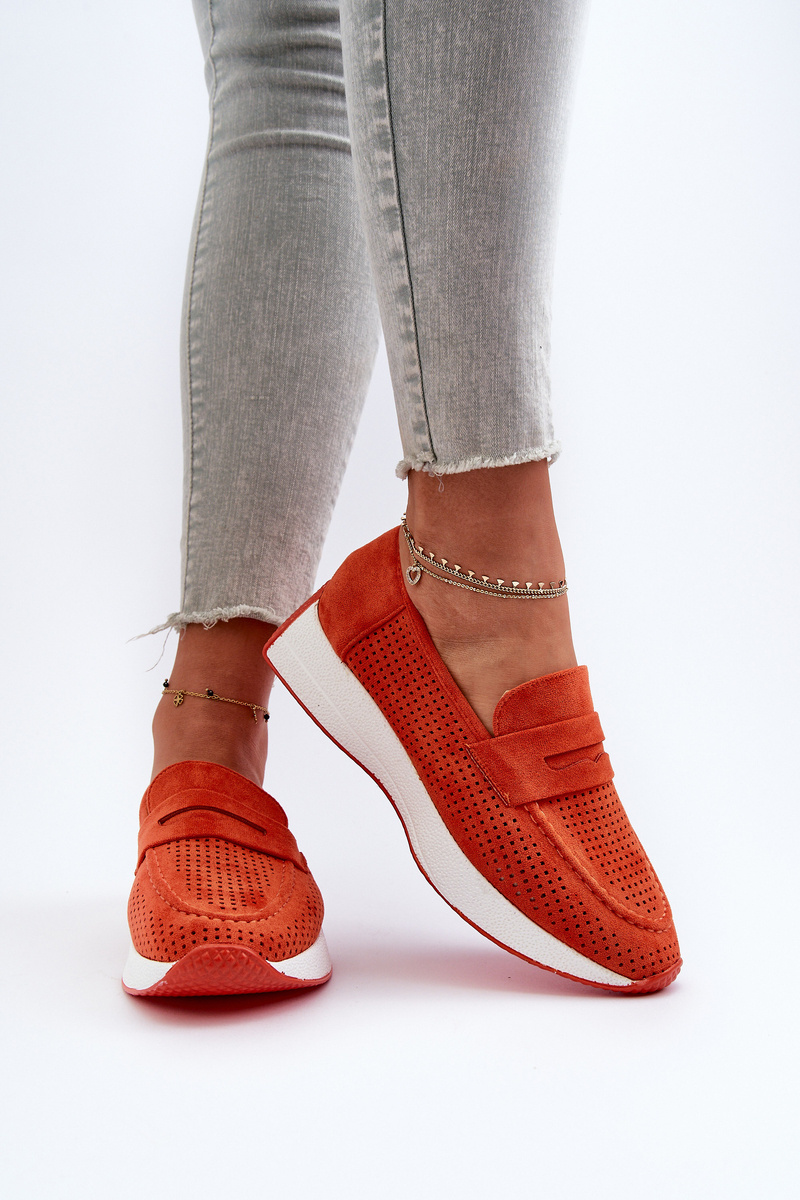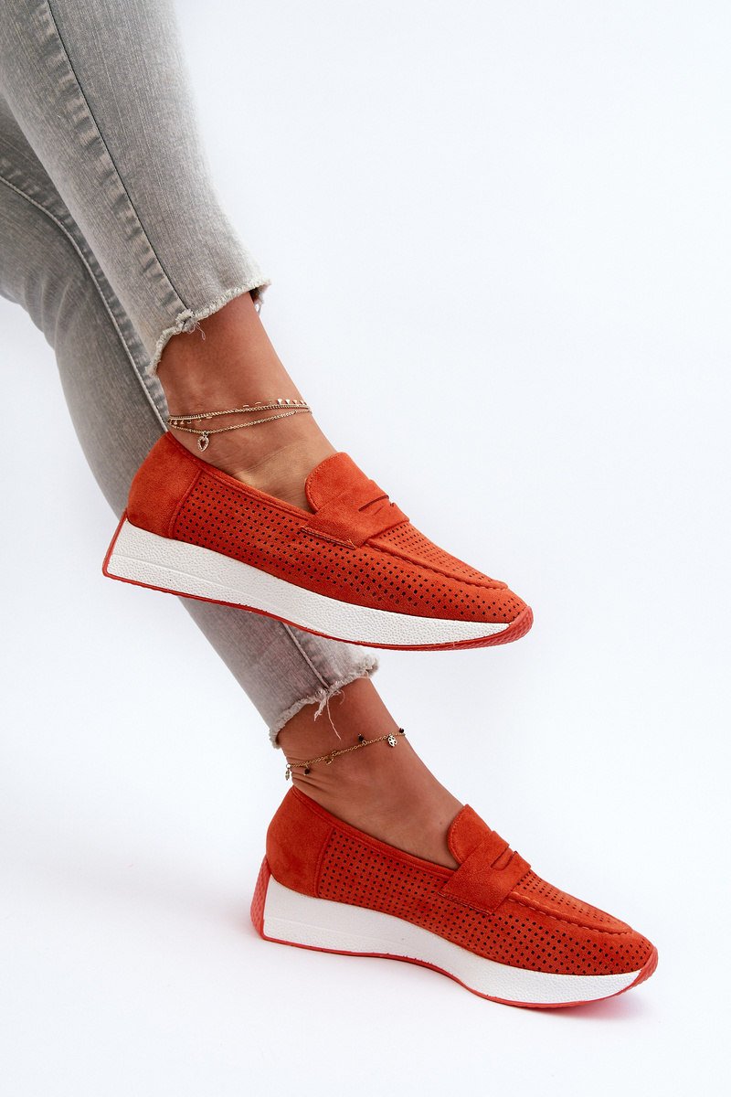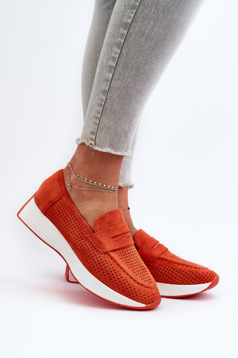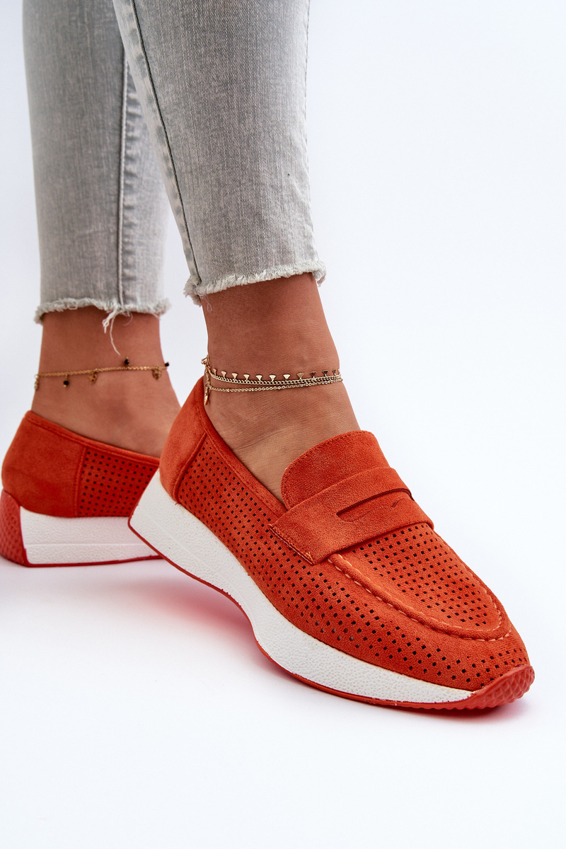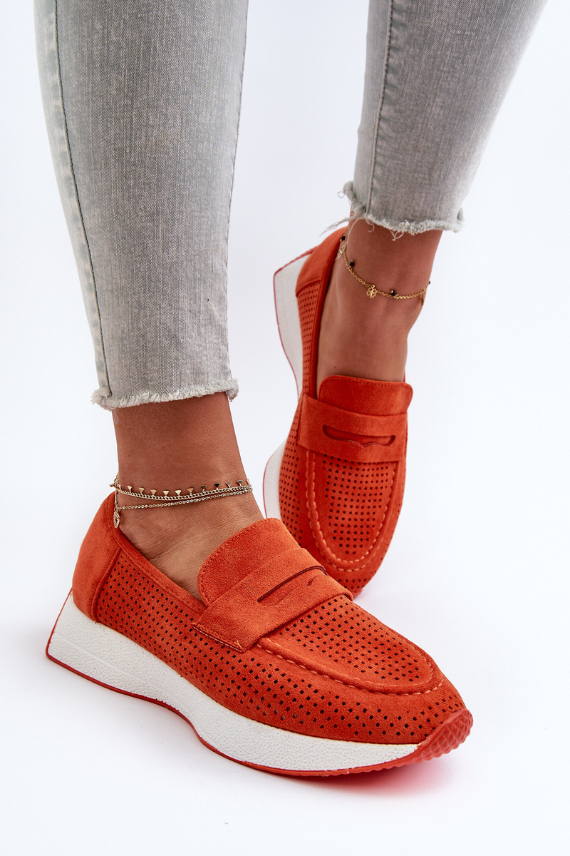 Mokasyny Damskie Na Platformie Eko Zamszowe Pomarańczowe Inesqua
