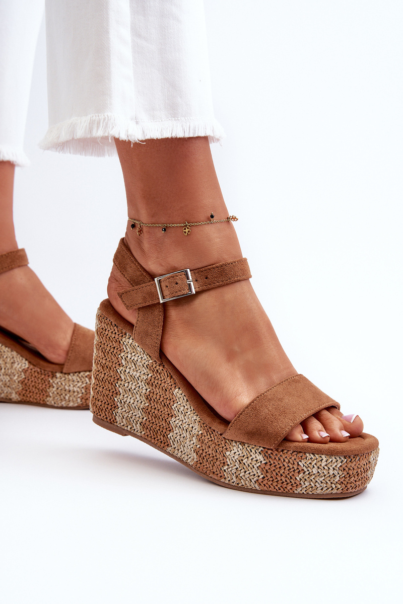 Sandały Damskie Na Koturnie Z Plecionką Camel Reviala