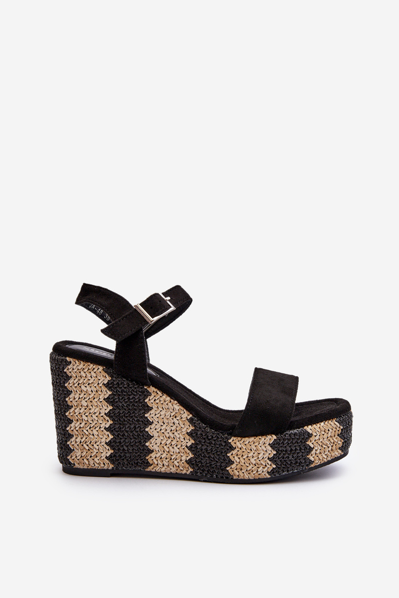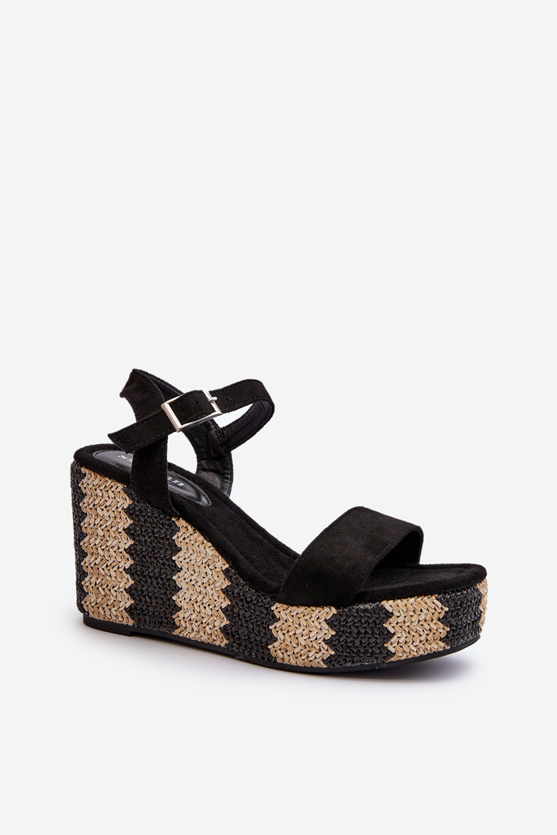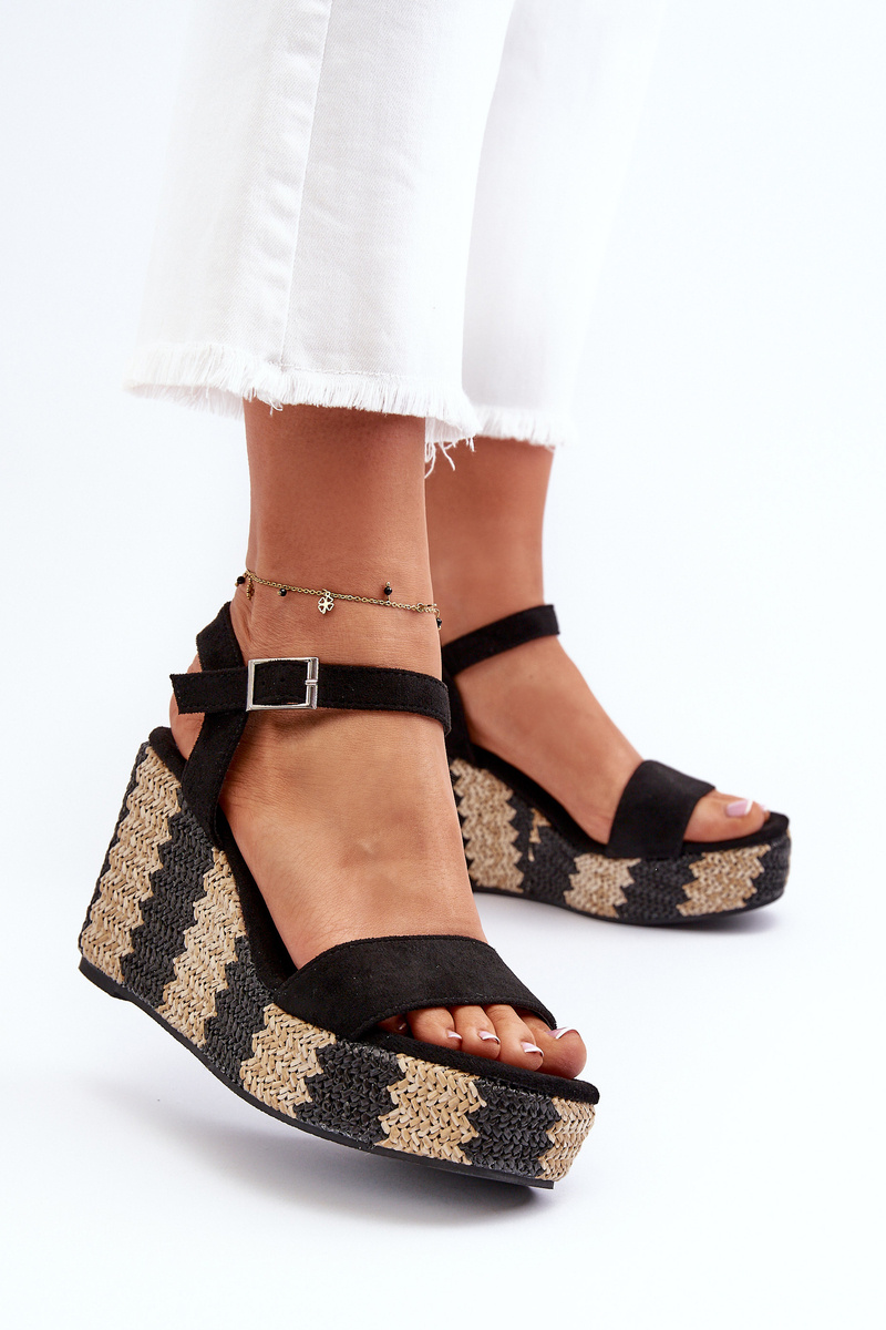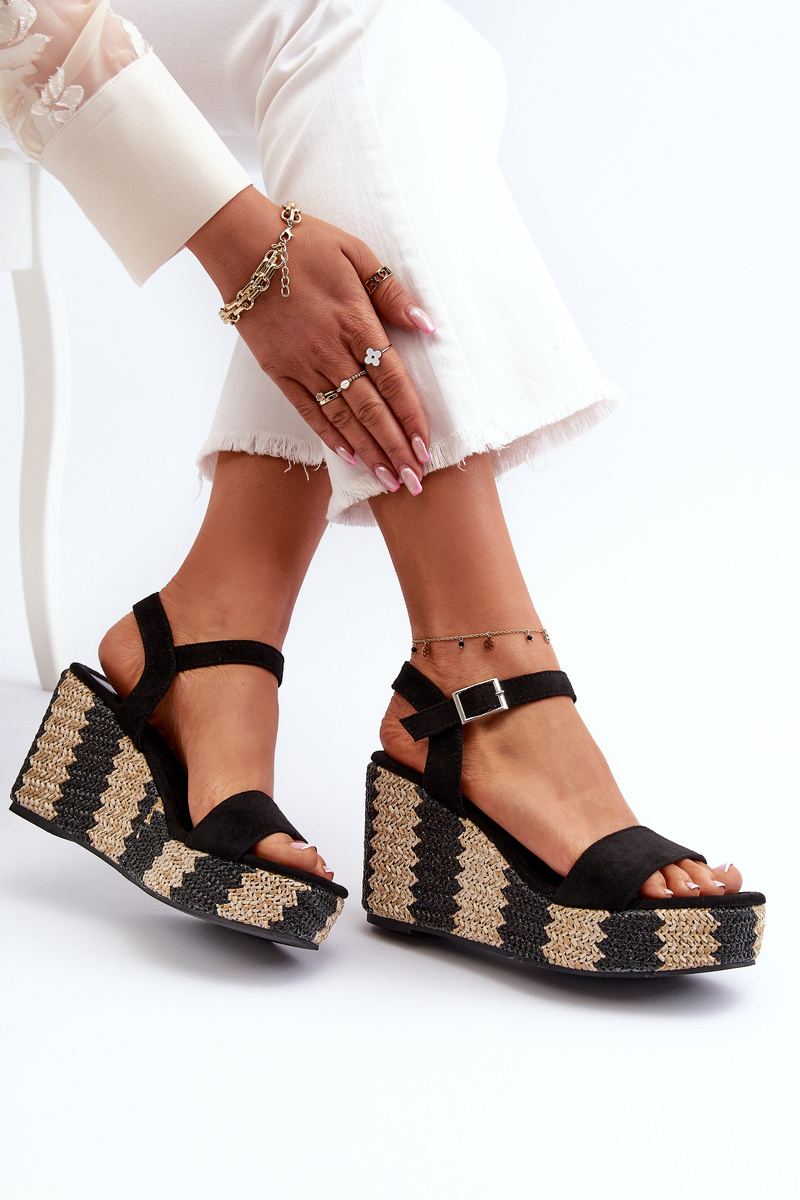 Sandały Damskie Na Koturnie Z Plecionką Czarne Reviala