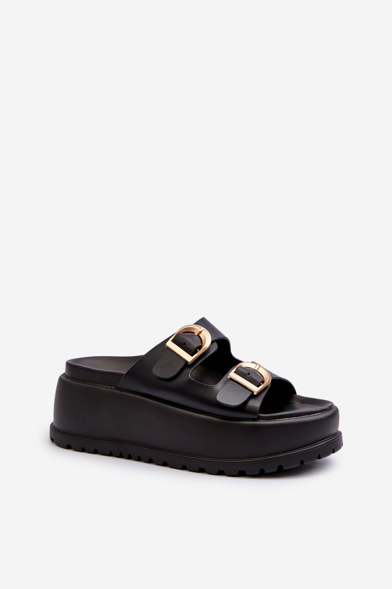 Damskie Klapki Na Masywnej Platformie Czarne Mililena