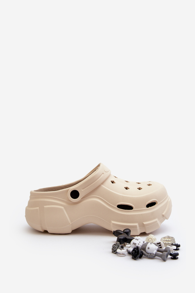 Piankowe Damskie Lekkie Klapki Na Masywnej Podeszwie Beżowe Matirra