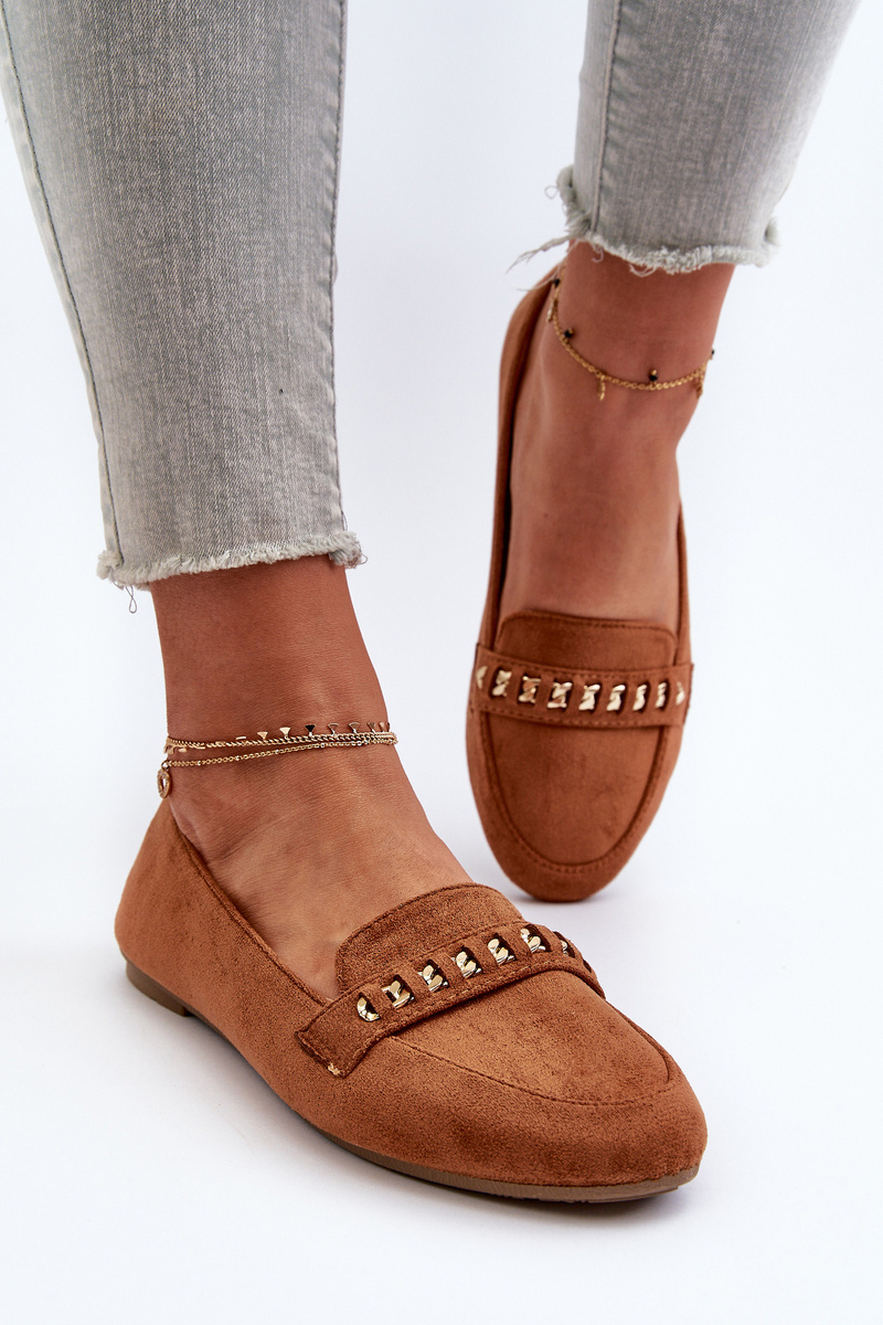 Błyszczące Mokasyny Damskie Z Łańcuchem Camel Aredilla
