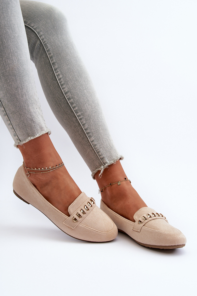 Błyszczące Mokasyny Damskie Z Łańcuchem Beżowe Aredilla