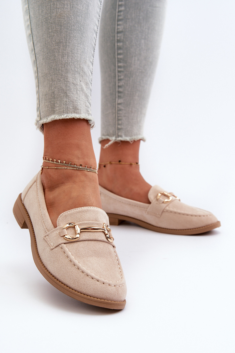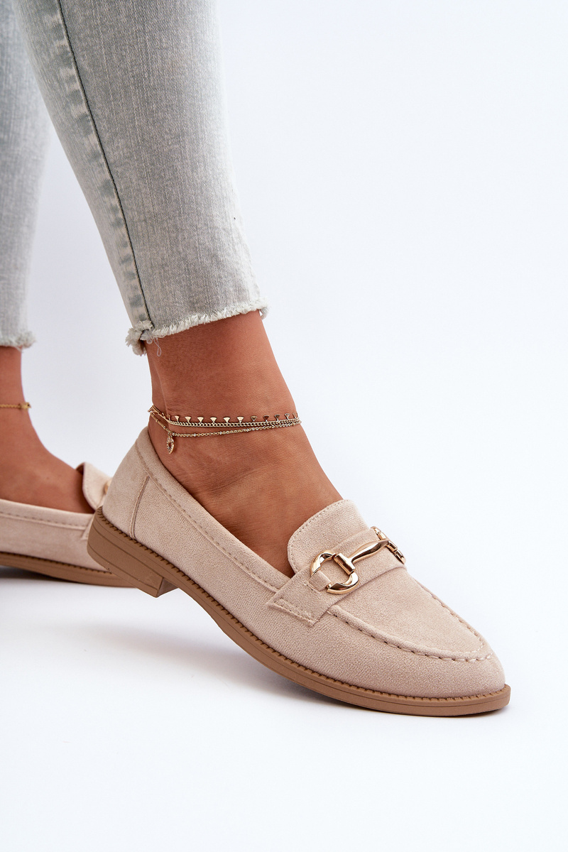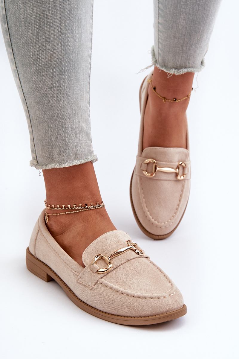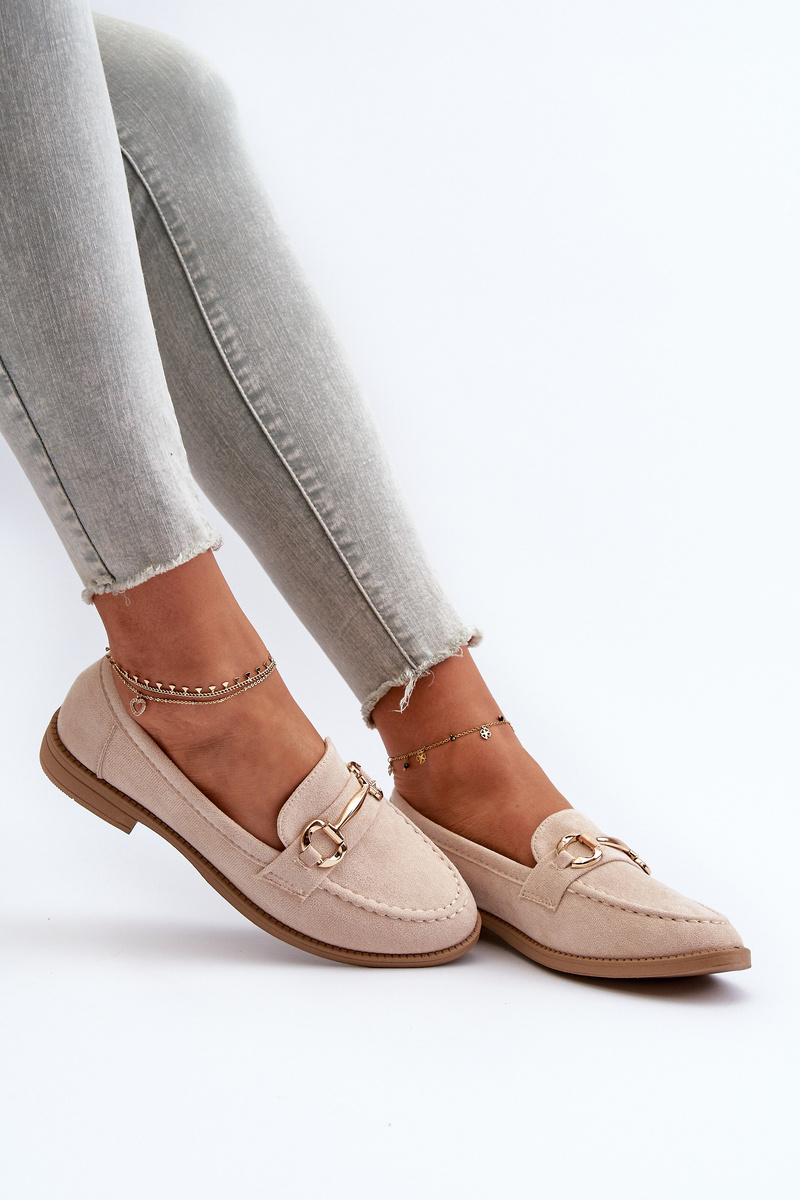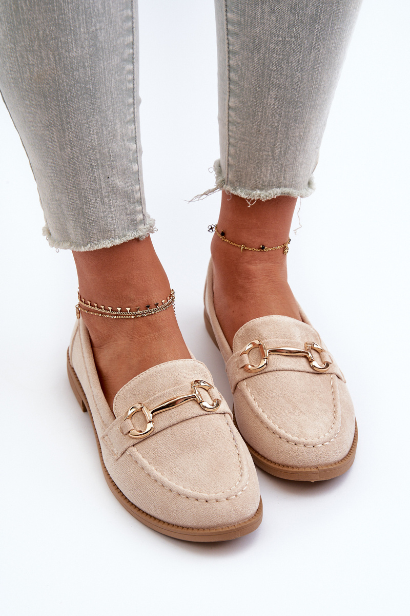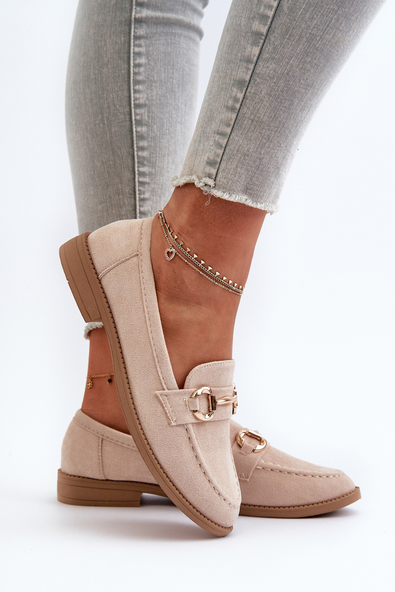 Mokasyny Damskie Na Płaskim Obcasie Z Ozdobą Beżowe Aviole