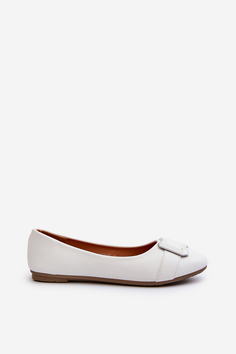 Baleriny Z Paskiem I Ozdobą Eko Skórzane Białe Cadwenla