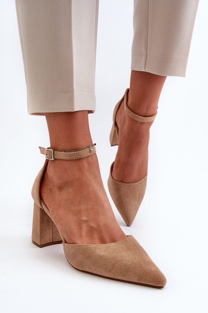 Czółenka Na Słupku Z Noskami W Szpic Eko Zamszowe Beżowe Halene