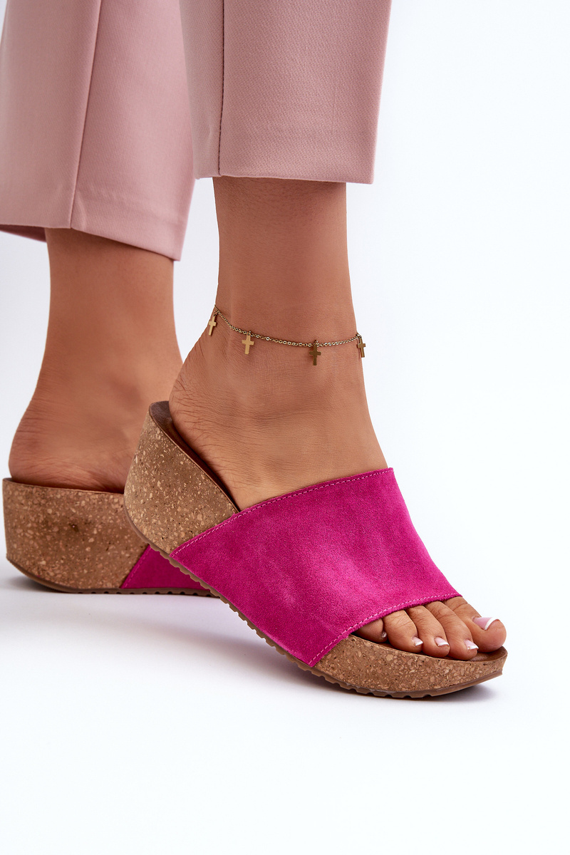 Zazoo 40311 Zamszowe Klapki Damskie Na Korkowym Koturnie Fuksja