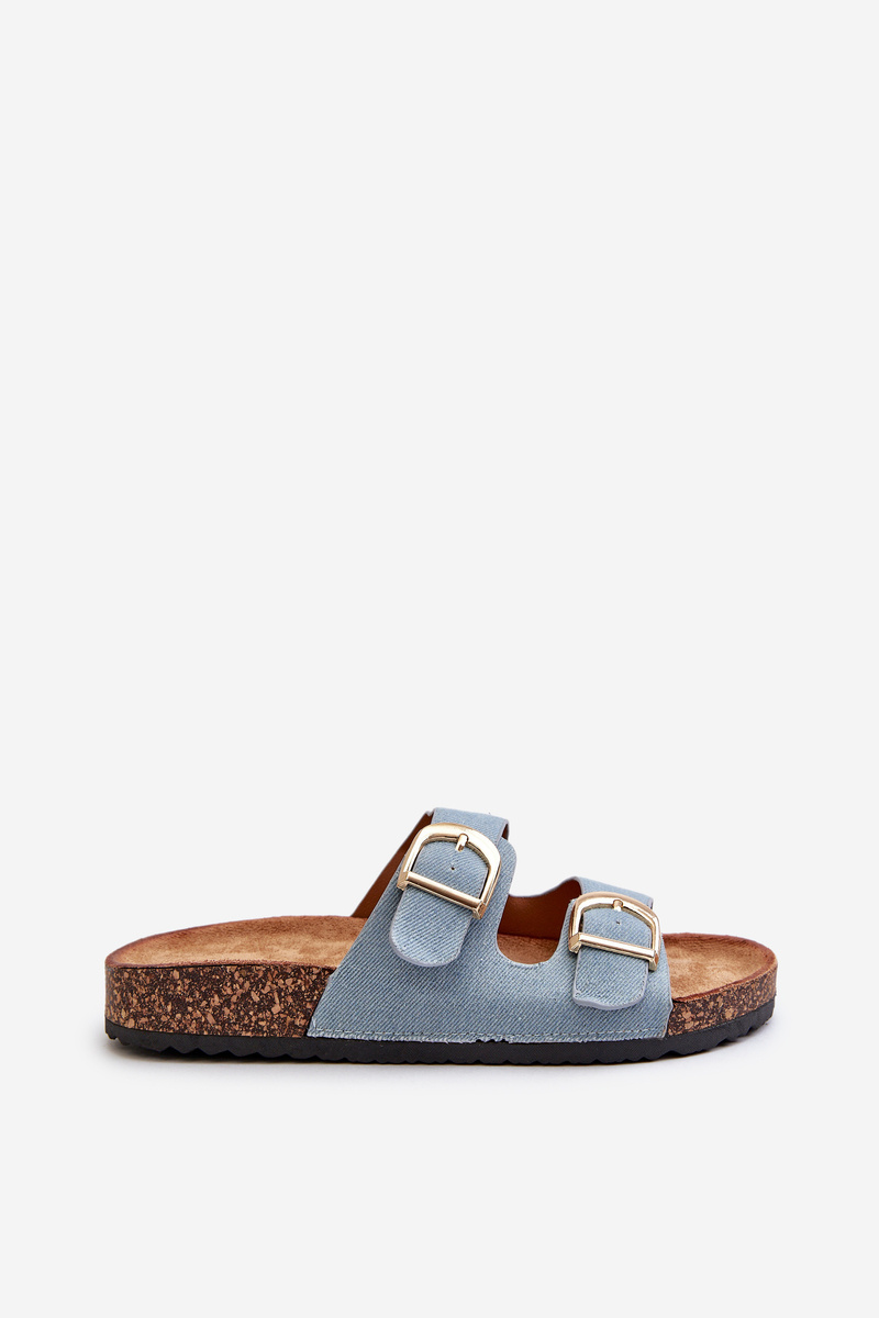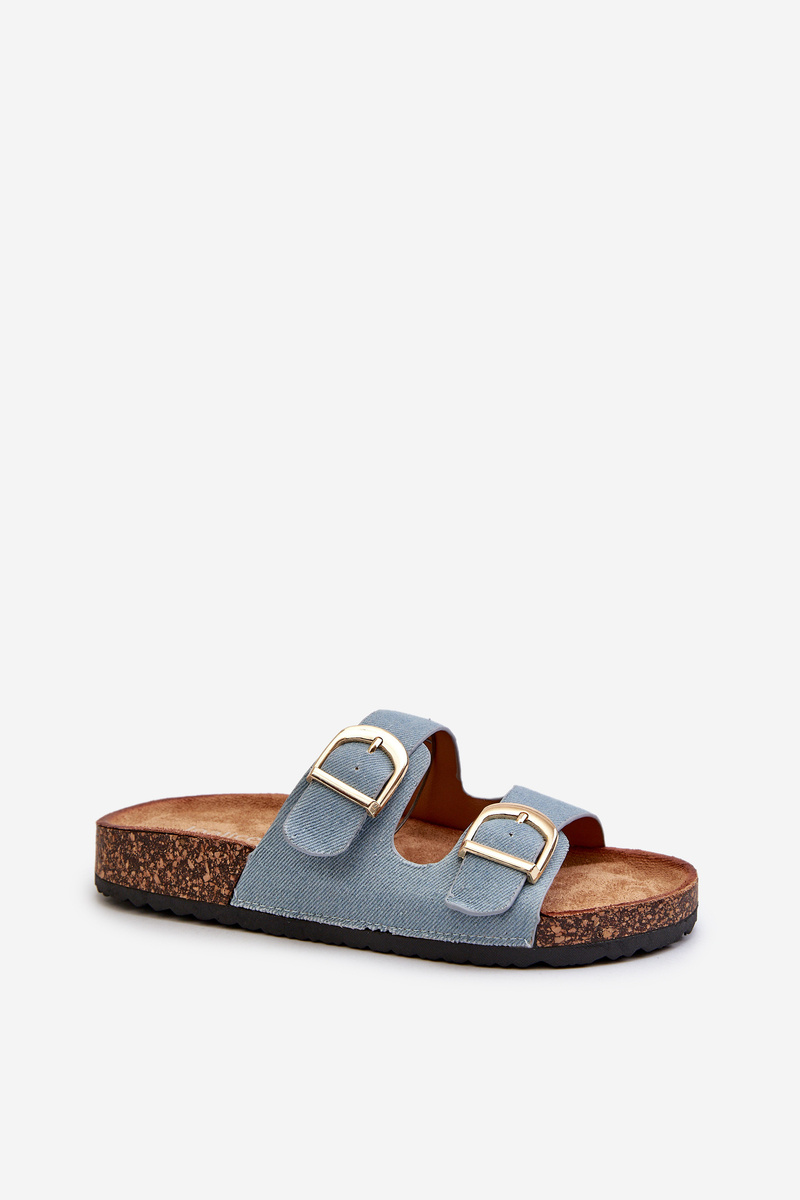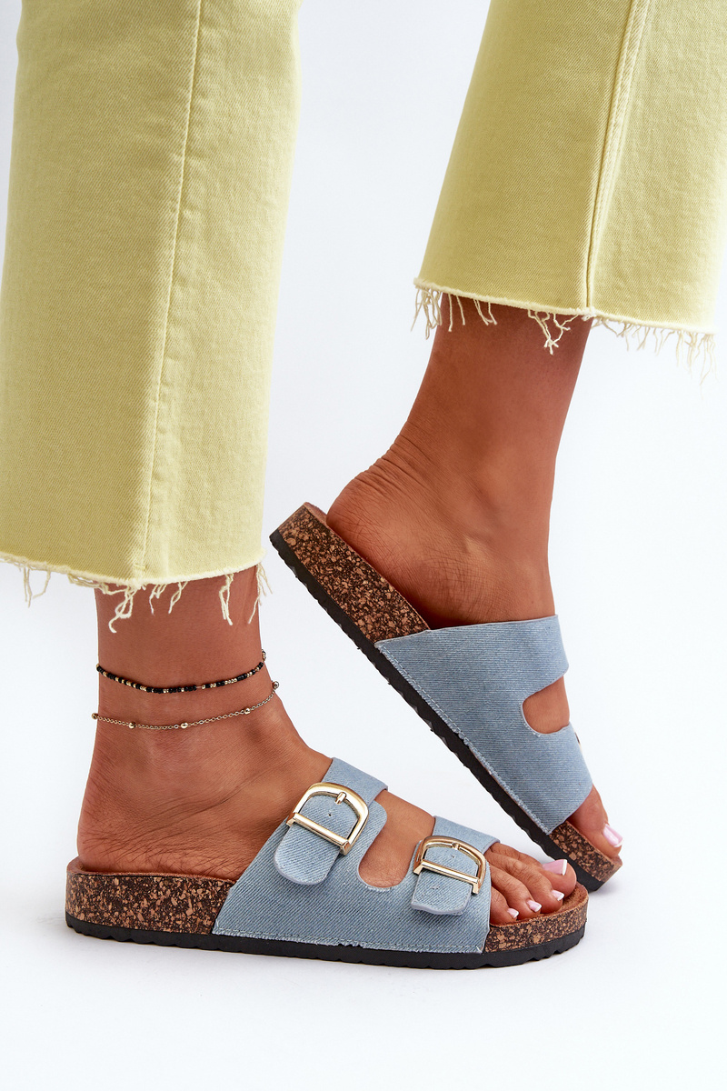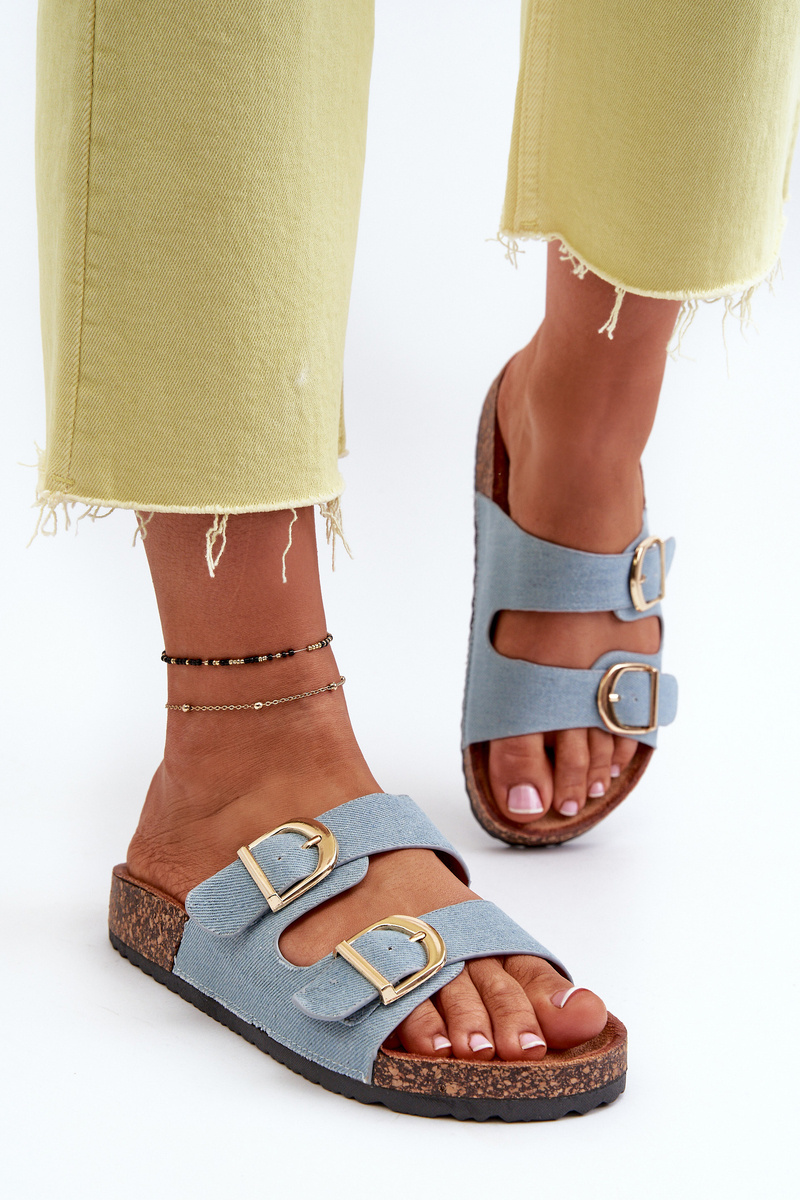Jeansowe Damskie Klapki Na Korkowej Platformie Z Paskami Niebieskie Doretta