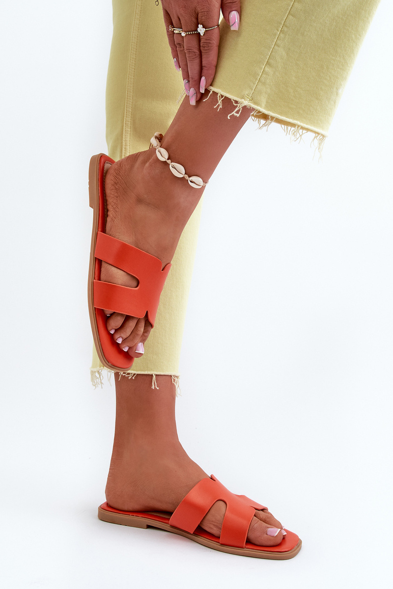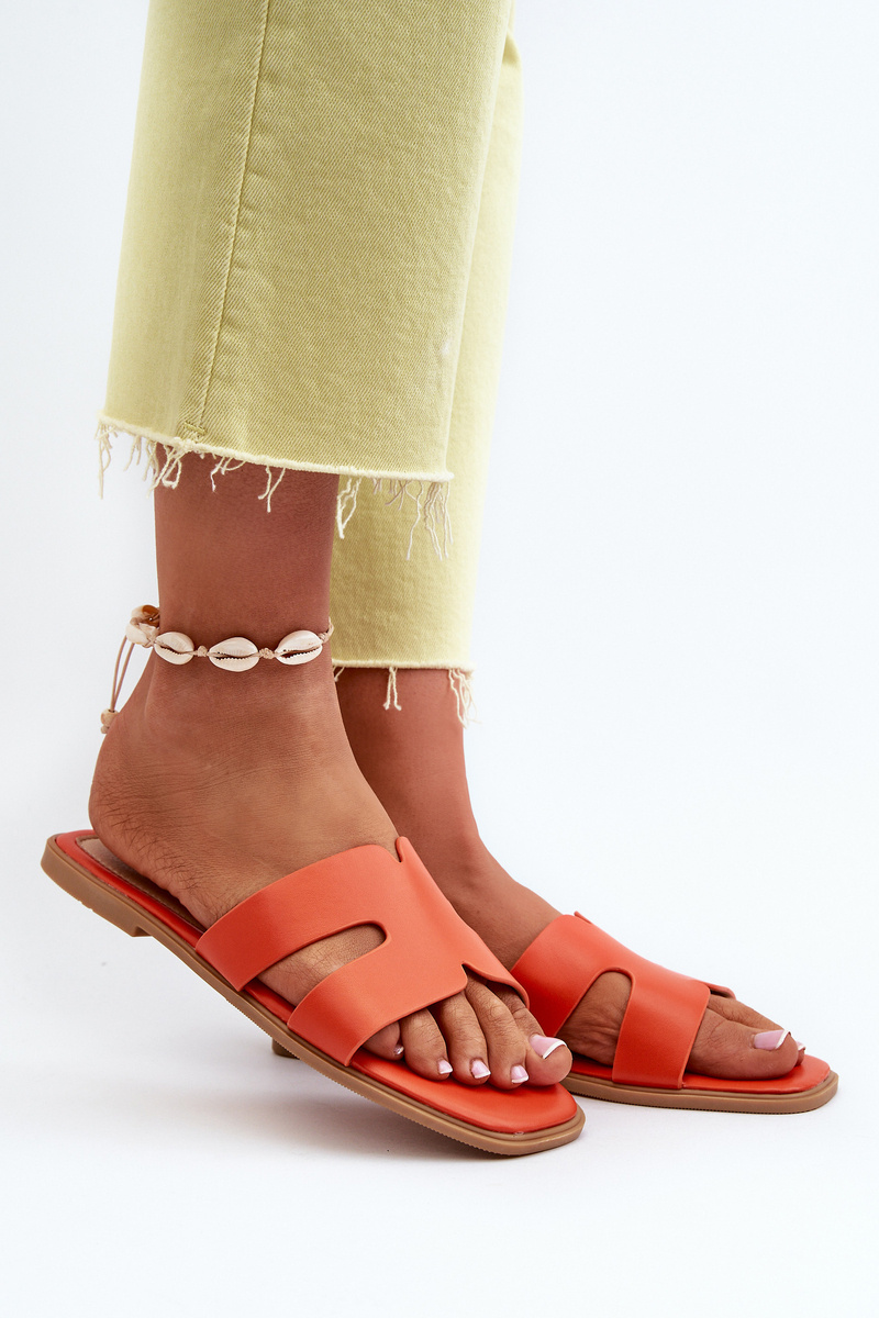 Damskie Płaskie Klapki Z Wycięciami Pomarańczowe Fiviama