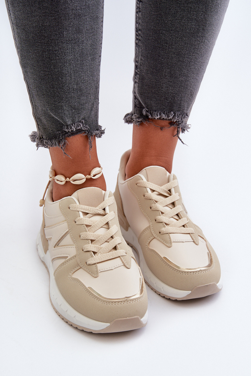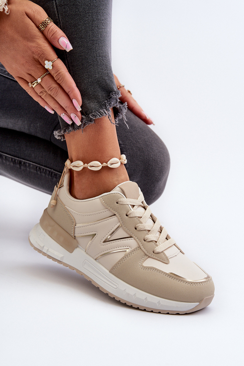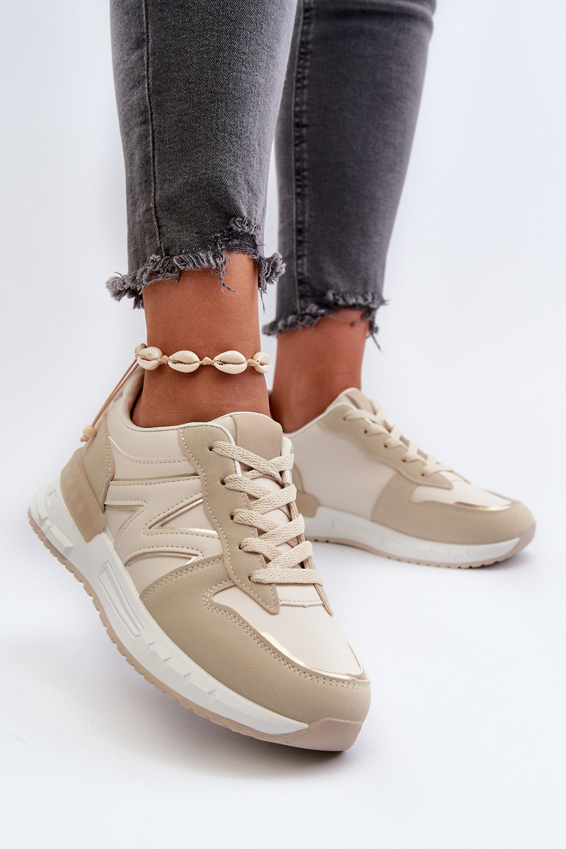 Sneakersy Damskie Z Eko Skóry Beżowe Kaimans