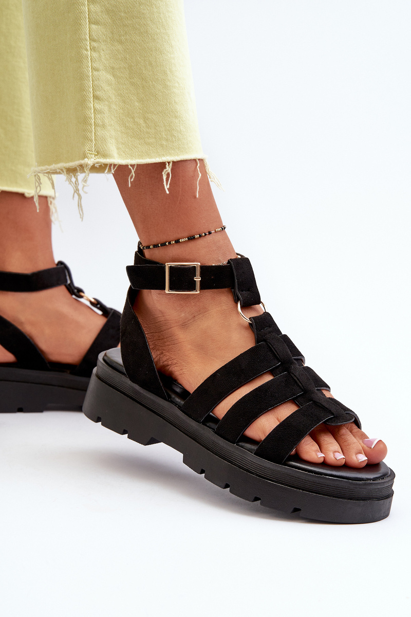 Sandały Damskie Gladiatorki Z Eko Zamszu Czarne Dorameia