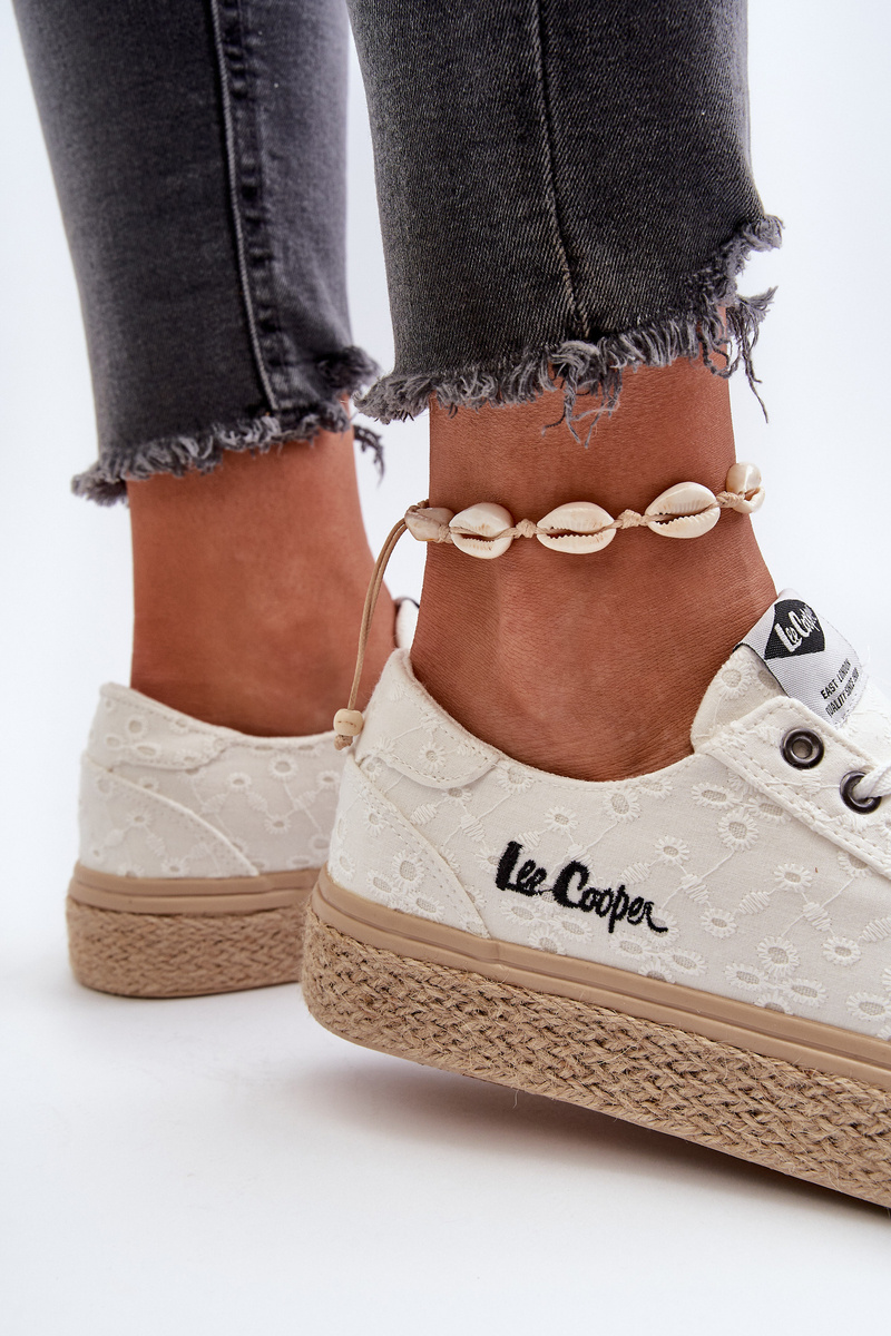 Koronkowe Trampki Damskie Z Plecionką Lee Cooper LCW-24-44-2425 Białe