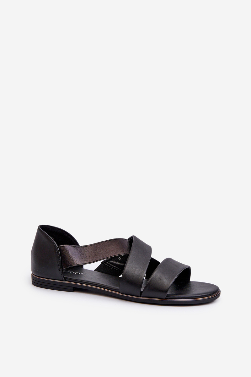 Skórzane Sandały Ze Ściągaczem Czarne Apulia