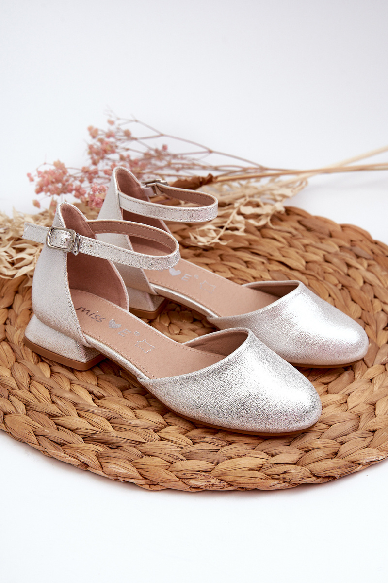 Dziecięce Błyszczące Sandałki Na Niskim Obcasie Srebrne Nelly