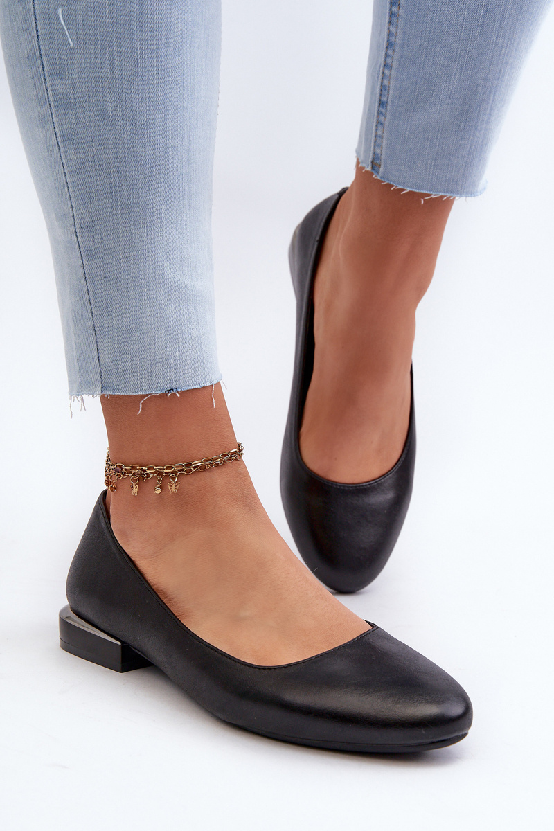 Baleriny Damskie Z Eko Skóry Na Niskim Obcasie Czarne Sergio Leone PB202