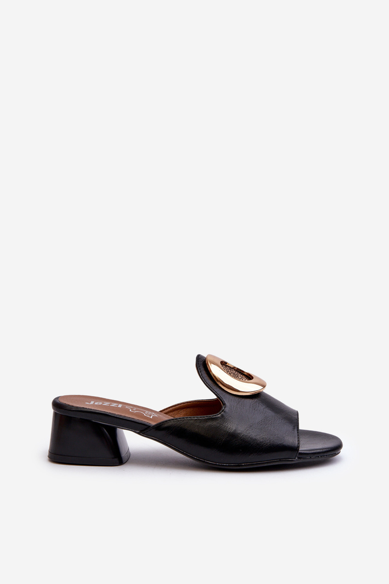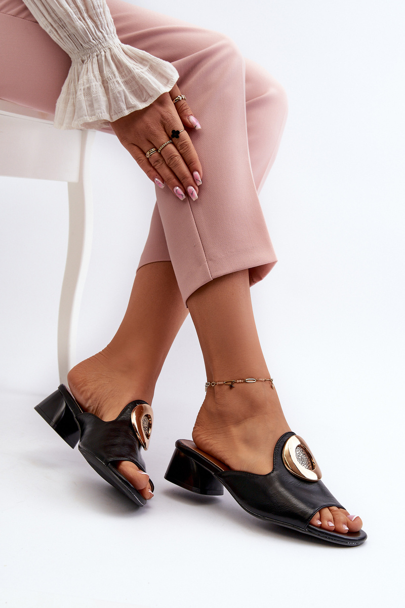 Eleganckie Klapki Damskie Na Niskim Obcasie Ze Złotą Ozdobą Czarne Uzimila