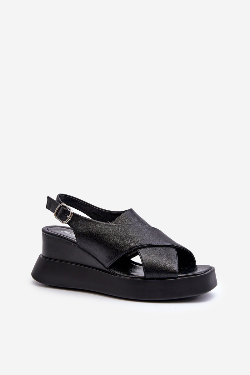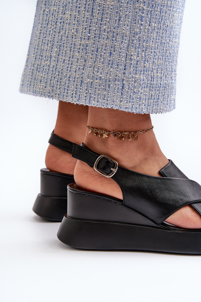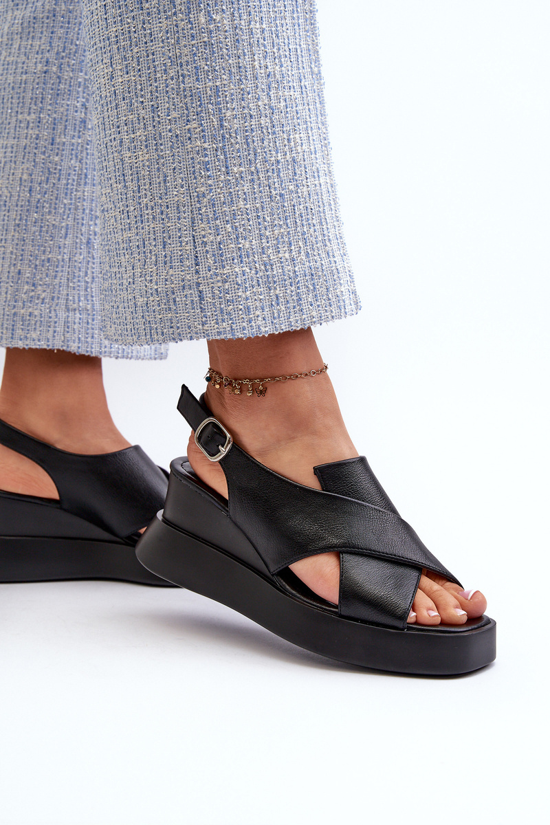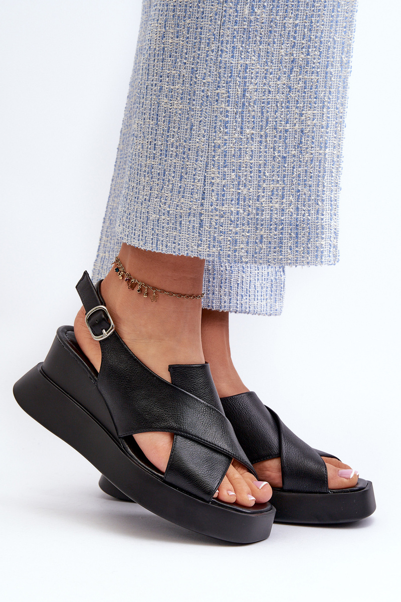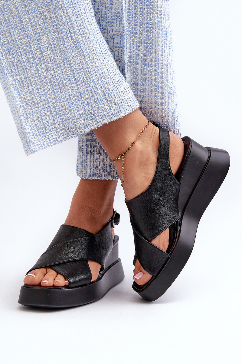 Sandały Damskie Z Eko Skóry Na Platformie I Koturnie Czarne Vaiara