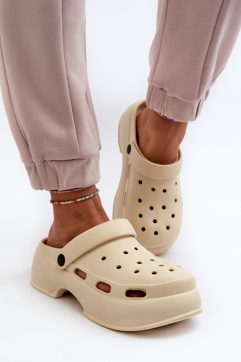 Piankowe Klapki Damskie Na Masywnej Podeszwie Beżowe Danollia