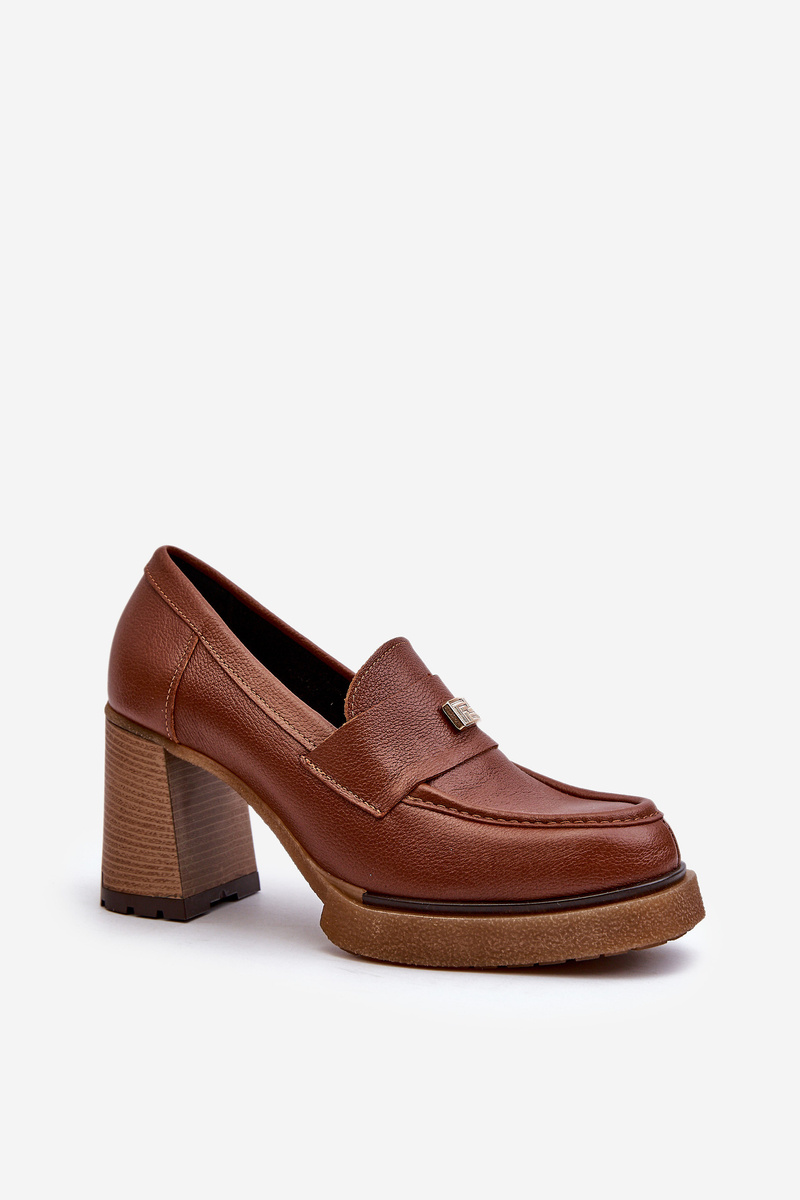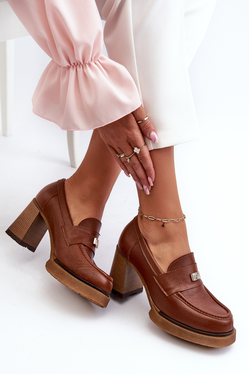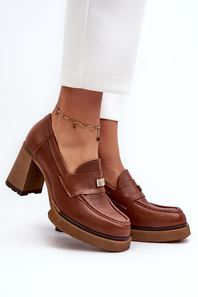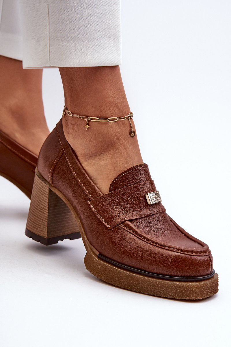 Zazoo 20169 Skórzane Półbuty Na Obcasie Brązowe