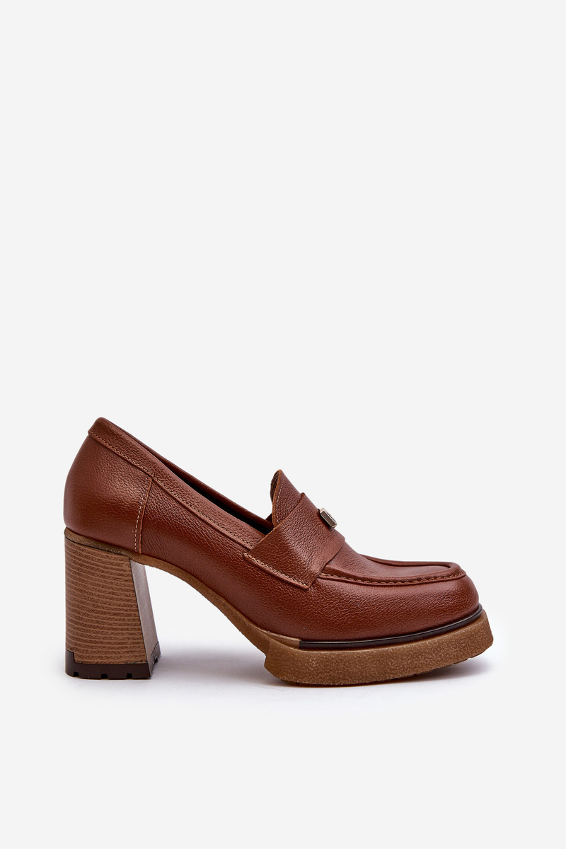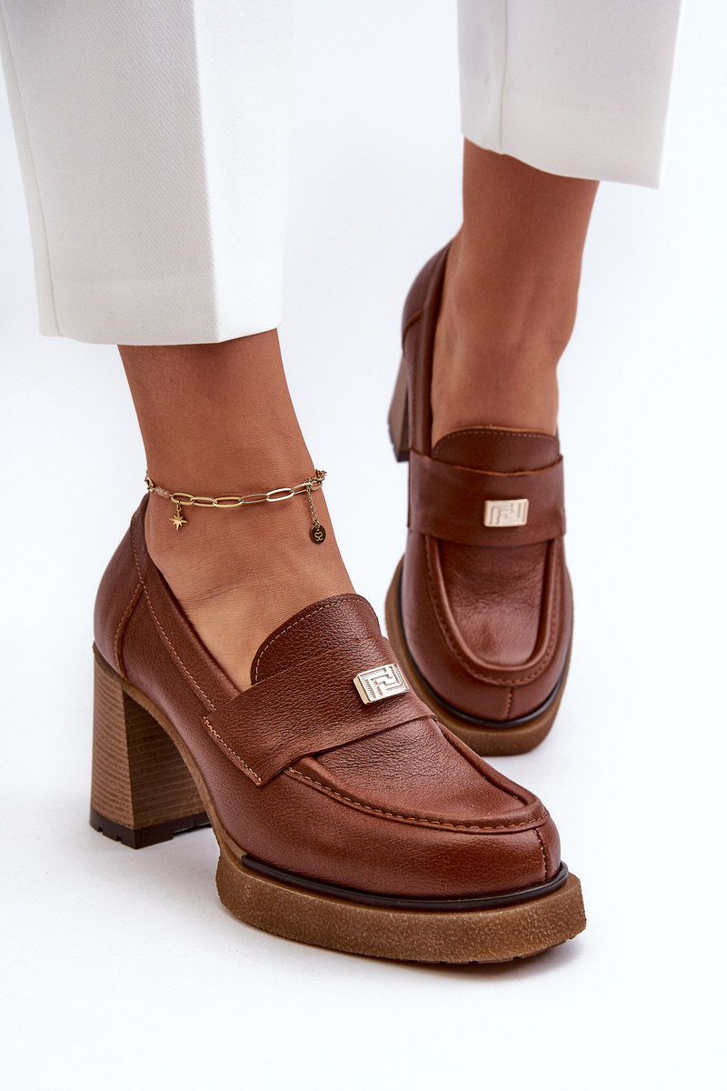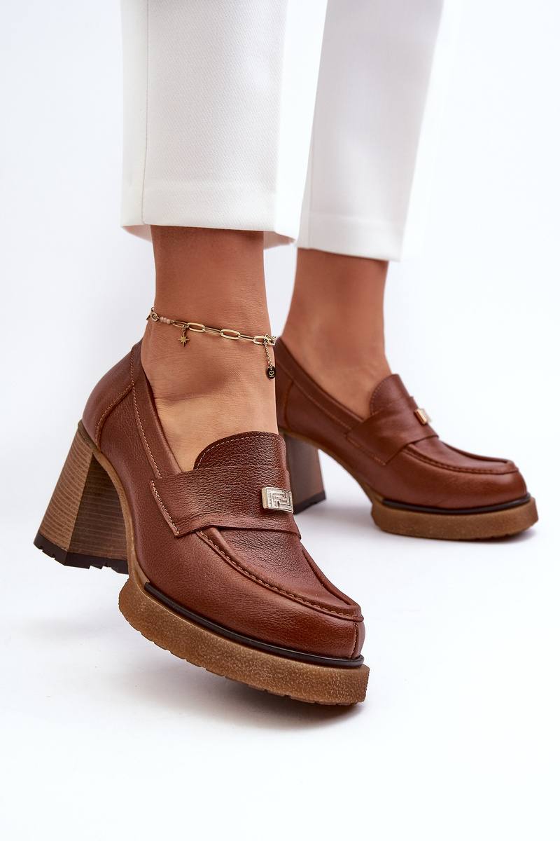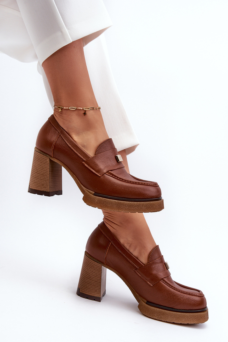 Zazoo 20169 Skórzane Półbuty Na Obcasie Brązowe