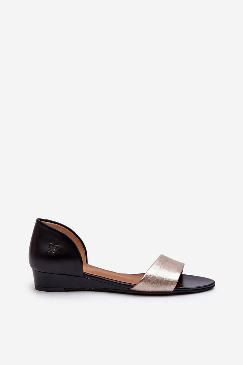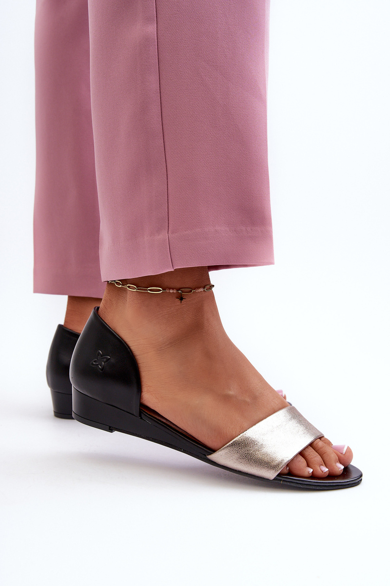 Skórzane Sandały Maciejka 1971-67 Czarno-Złote