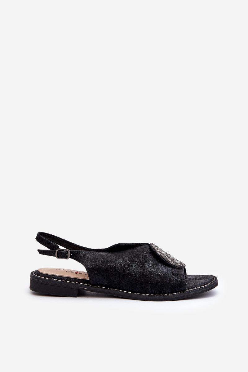 Sandały Damskie Z Ozdobą Na Płaskim Obcasie S.Barski KV24-057 Czarne