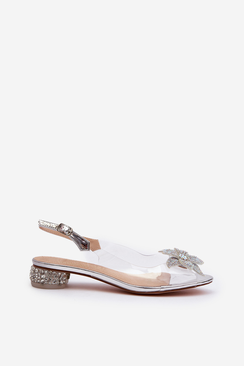Sandały Transparentne Na Niskim Obcasie Z Ozdobą Srebrne D&A MR38-383