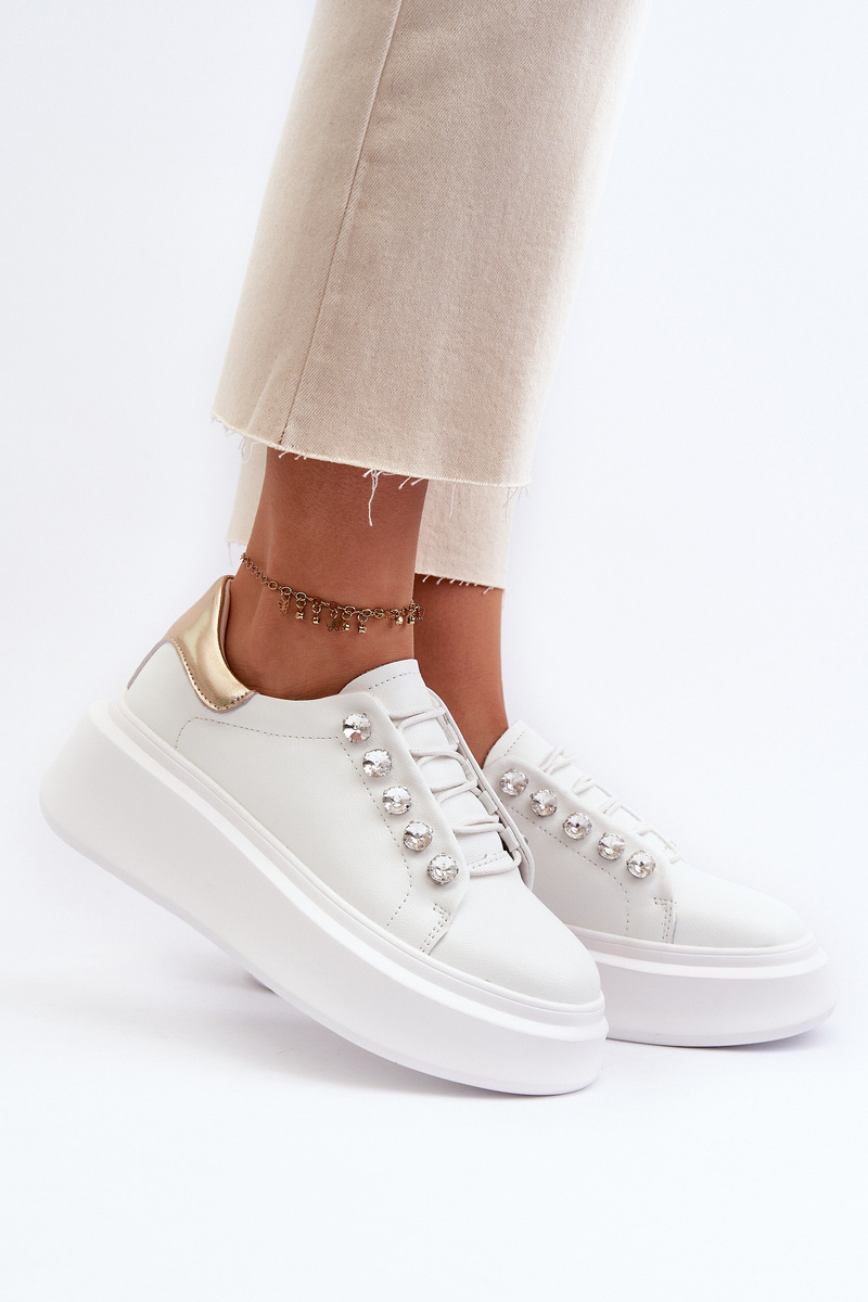 Skórzane Sneakersy Damskie Na Masywnej Platformie Białe S.Barski LR628
