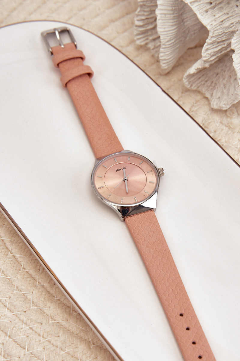 Damski Zegarek Na Eko Skórzanym Pasku Różowy Ernest E62013L