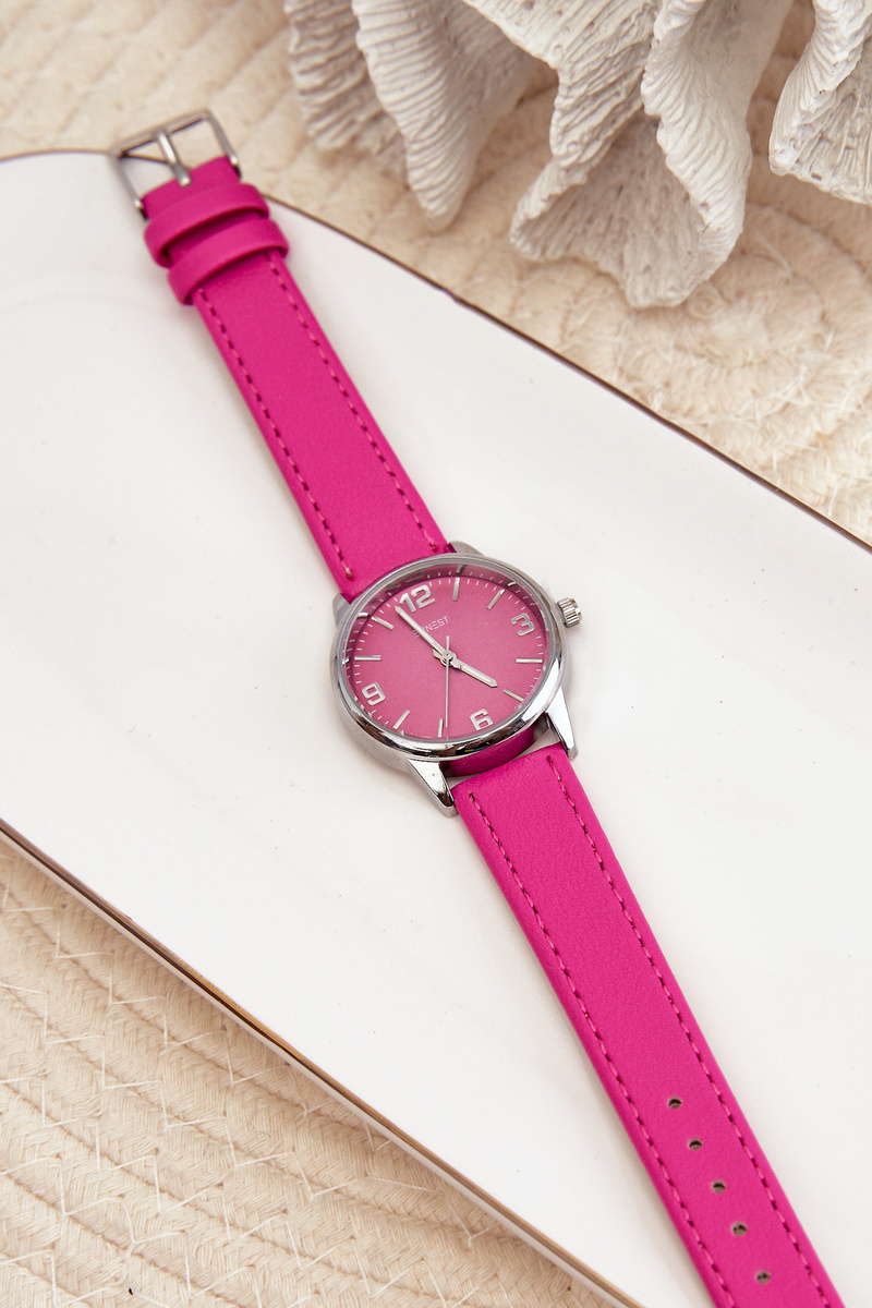 Damski Zegarek Na Eko Skórzanym Pasku Fuksja Ernest E62177