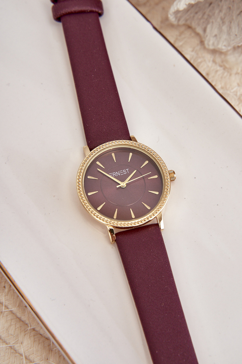 Zegarek Na Eko Skórzanym Pasku Bez Niklu Fioletowy ERNEST E62155D