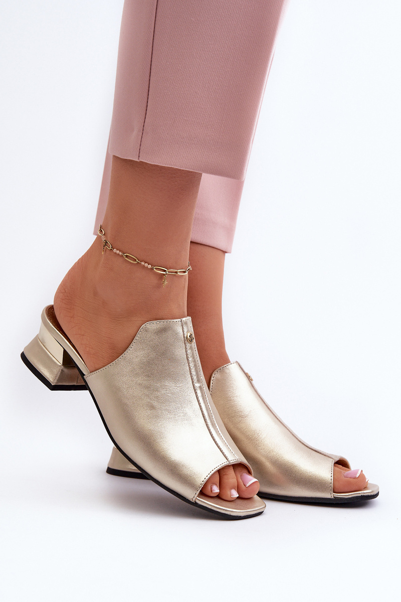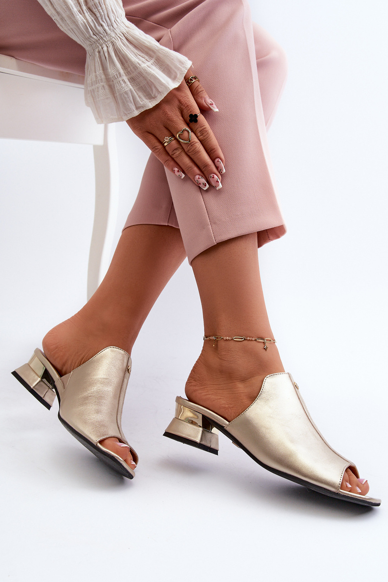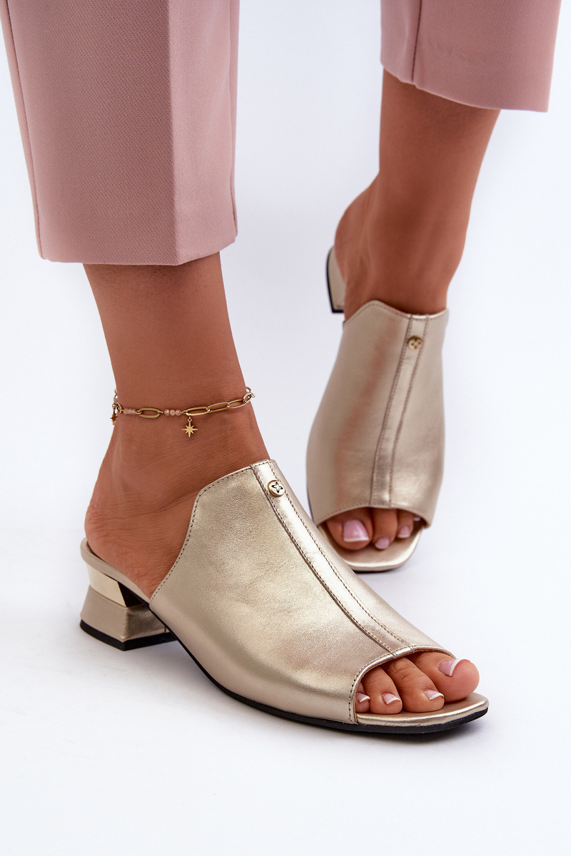 Eleganckie Klapki Damskie Ze Skóry Naturalnej Na Niskim Obcasie Maciejka 06360-25 Złote