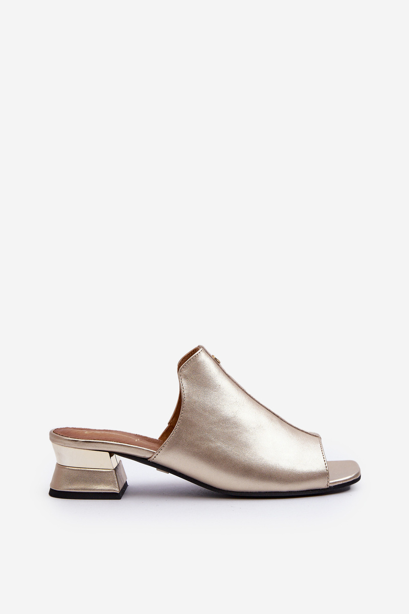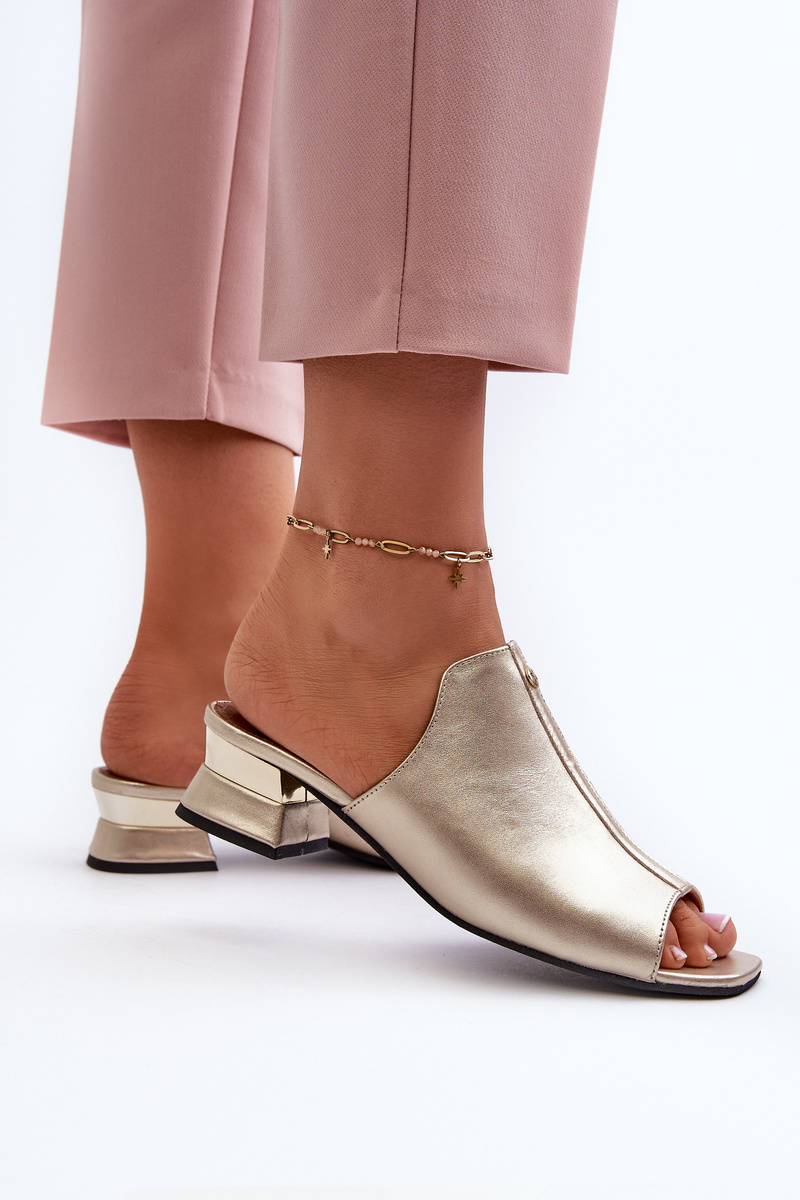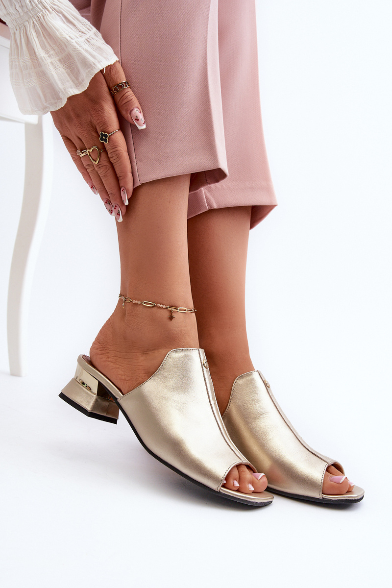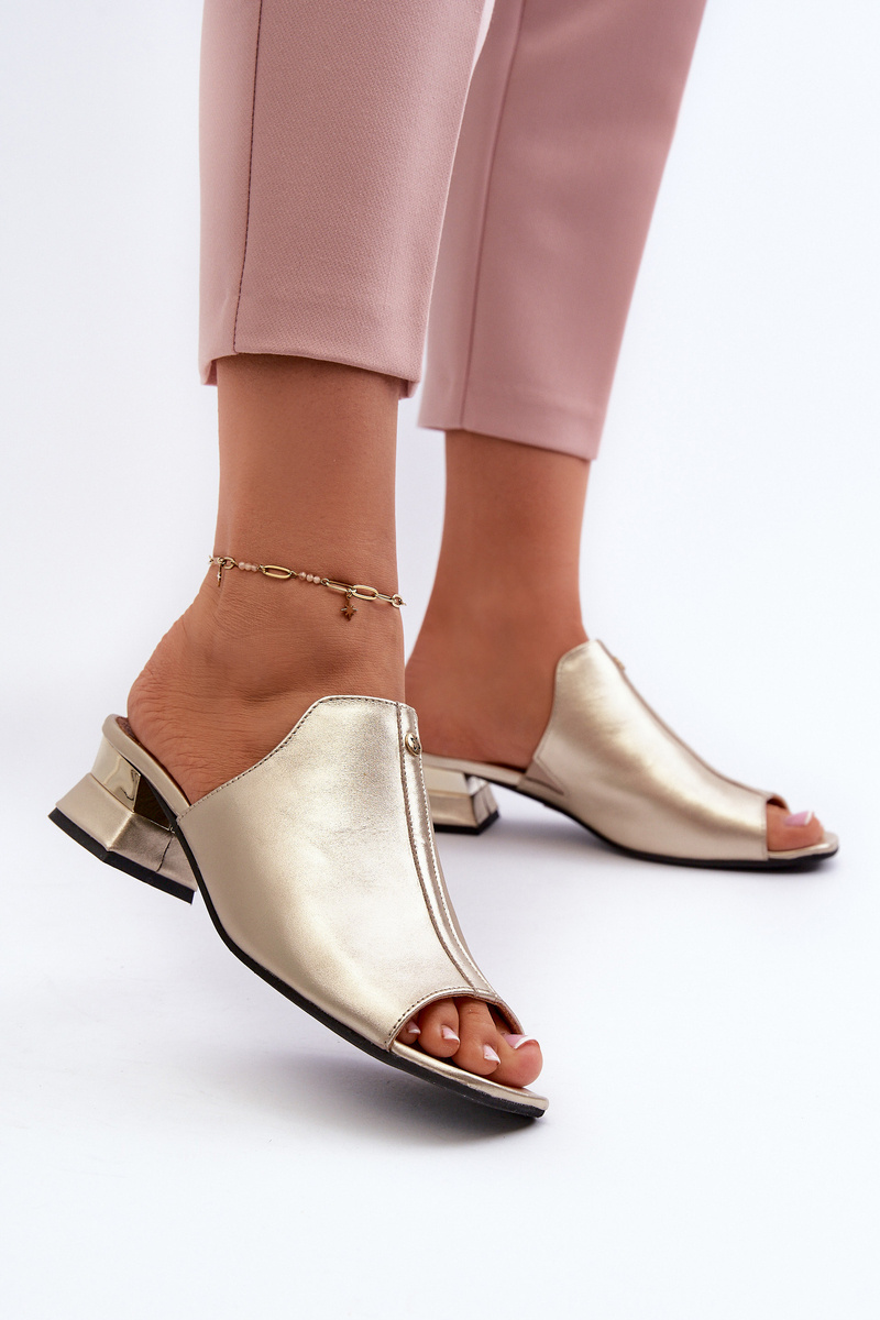 Eleganckie Klapki Damskie Ze Skóry Naturalnej Na Niskim Obcasie Maciejka 06360-25 Złote