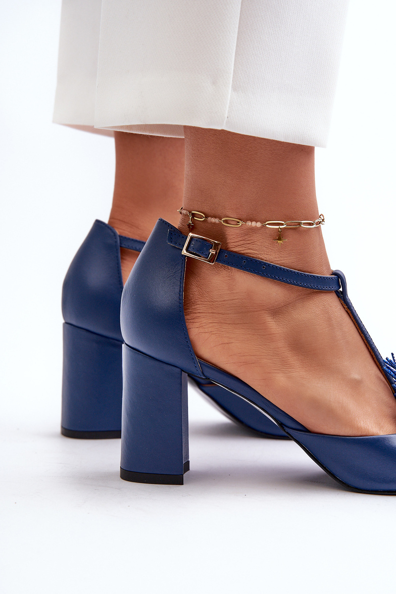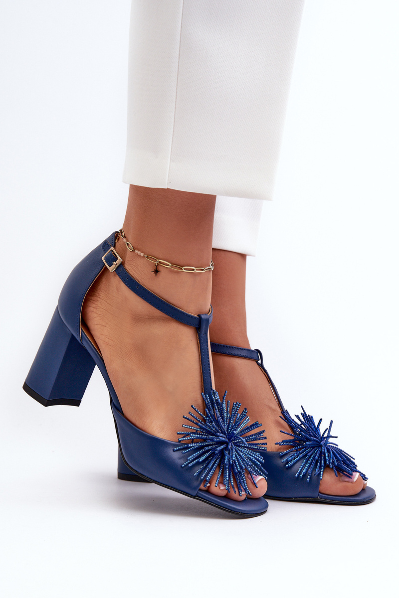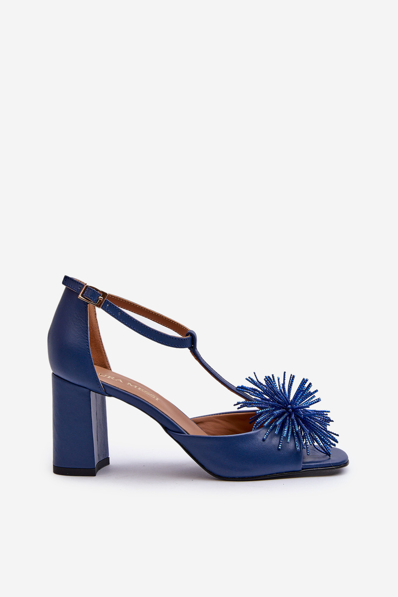 Sandały Skórzane Na Słupku Z Ozdobą Laura Messi 2758 Granatowe