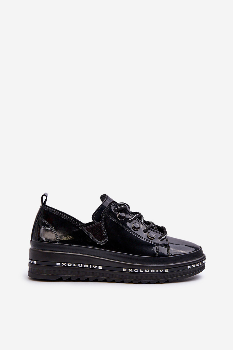 Sznurowane Półbuty Damskie Na Platformie Skóra Naturalna S.Barski LR620 Czarne