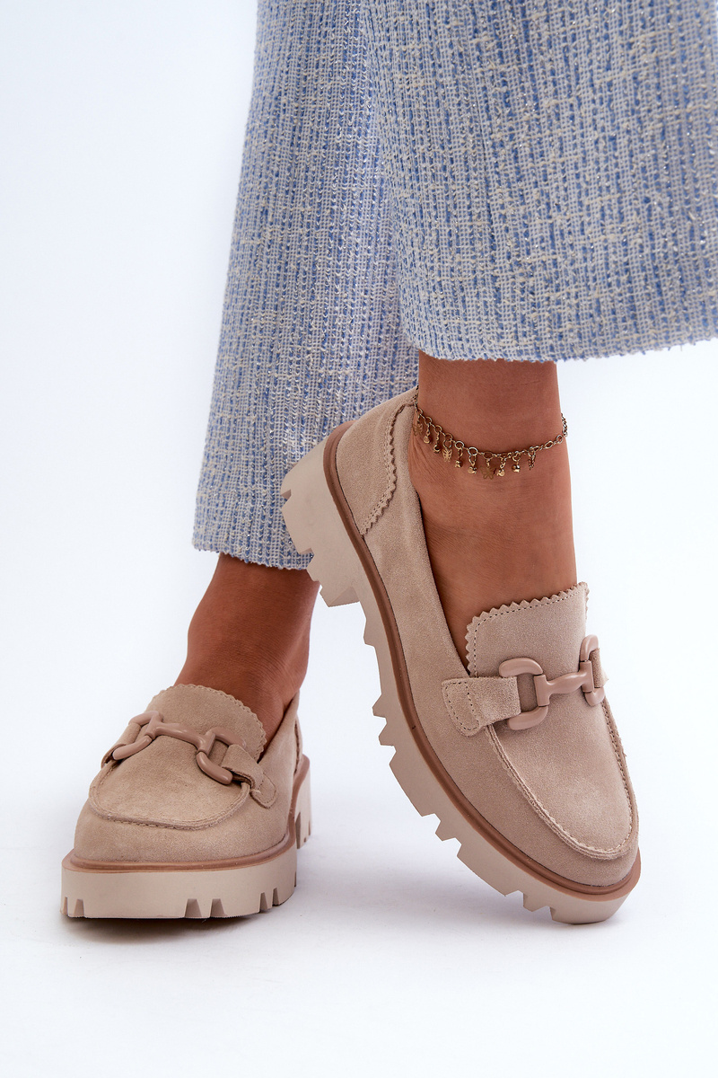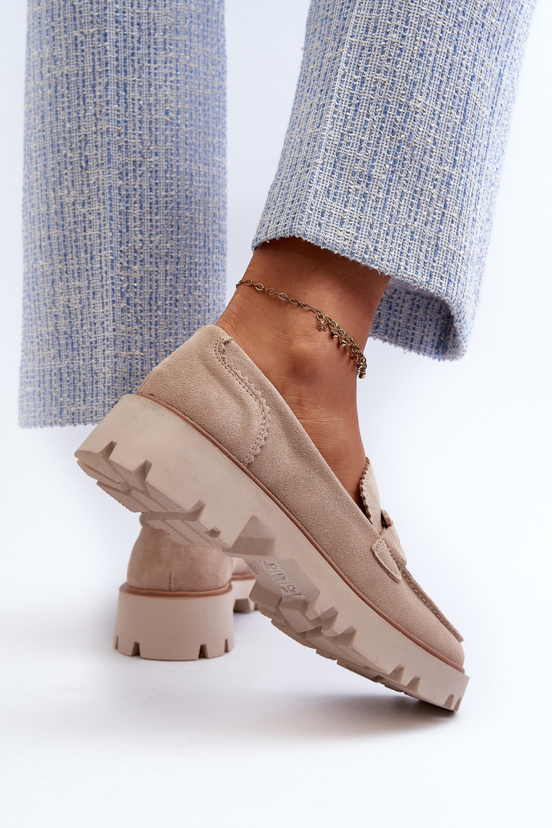 Zamszowe Mokasyny Damskie Z Ozdobą D&A TW117 Beżowe