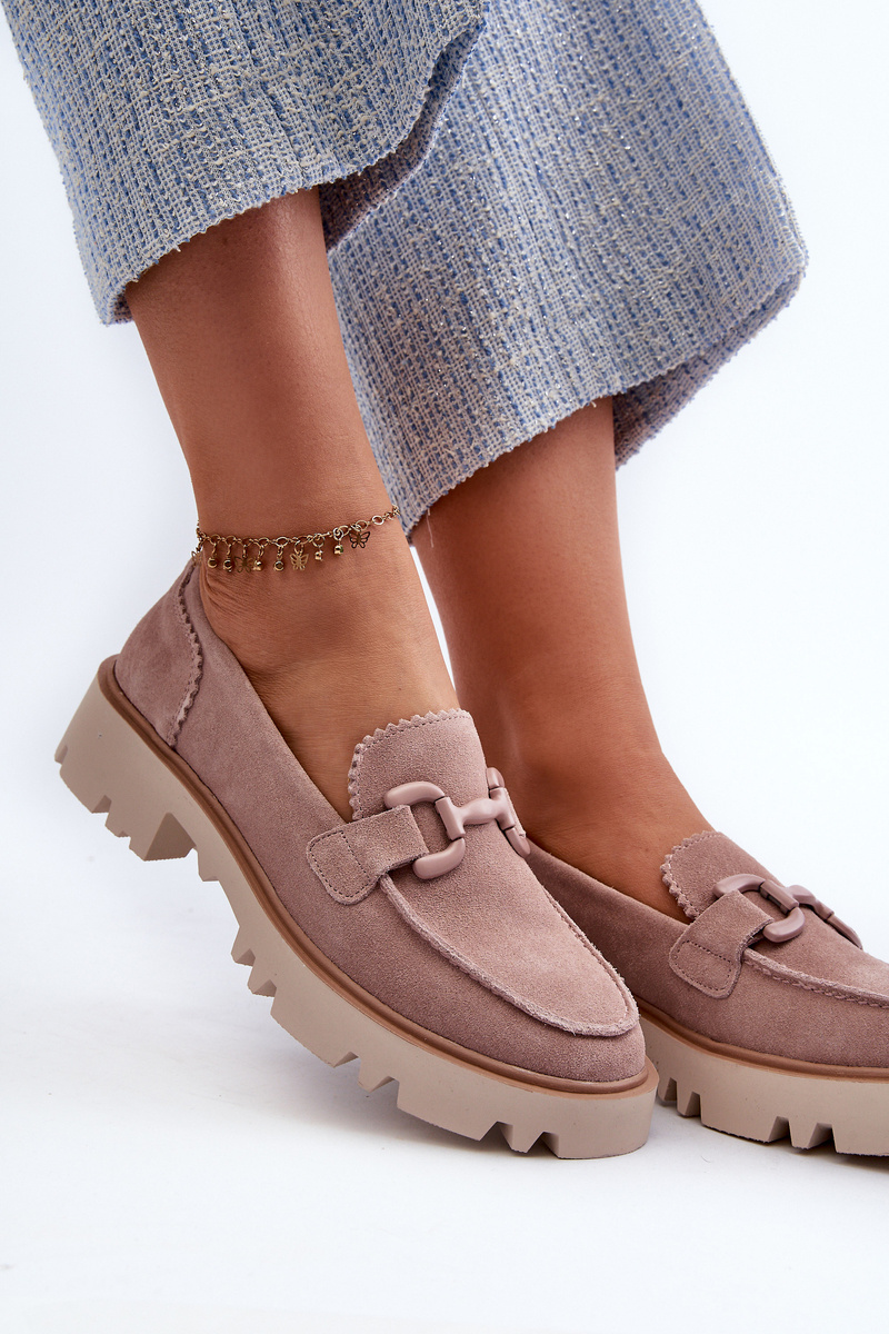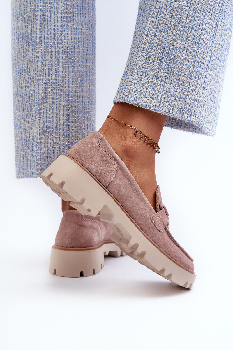 Zamszowe Mokasyny Damskie Z Ozdobą D&A TW117 Różowe