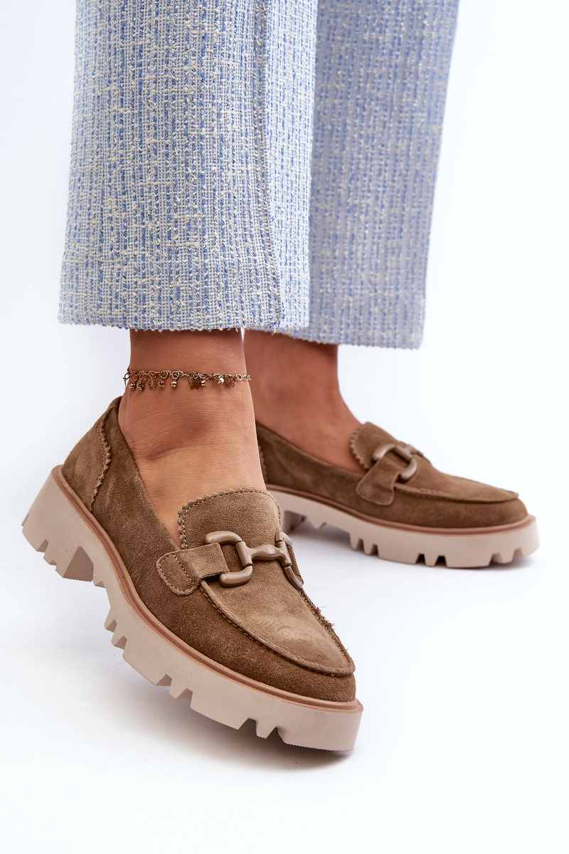 Zamszowe Mokasyny Damskie Z Ozdobą D&A TW117 Brązowe