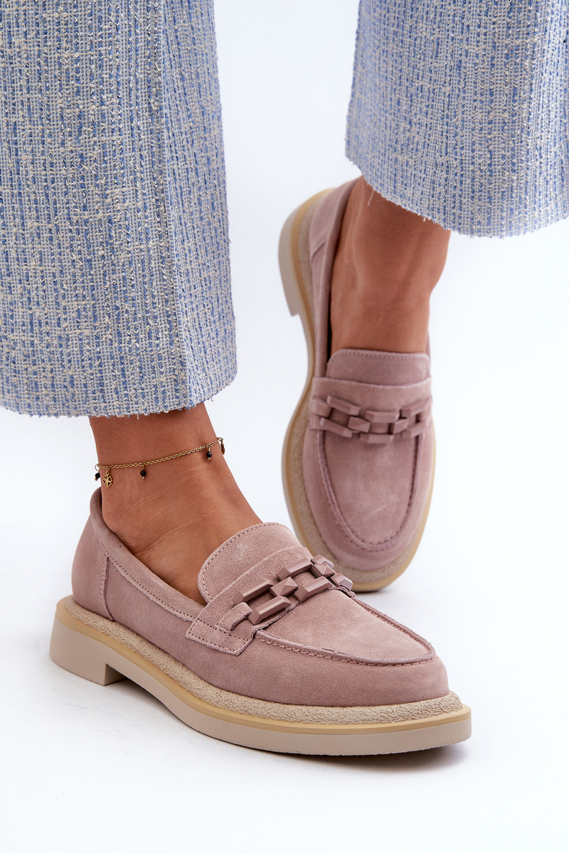 Mokasyny Damskie Zamszowe Na Płaskim Obcasie Z Ozdobą D&A TW101 Brudny Róż