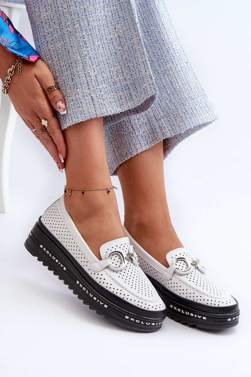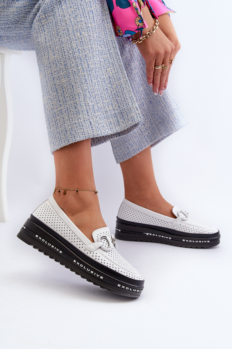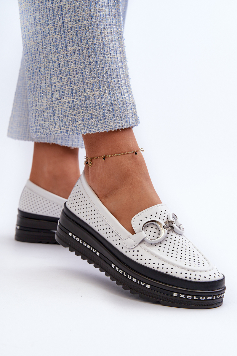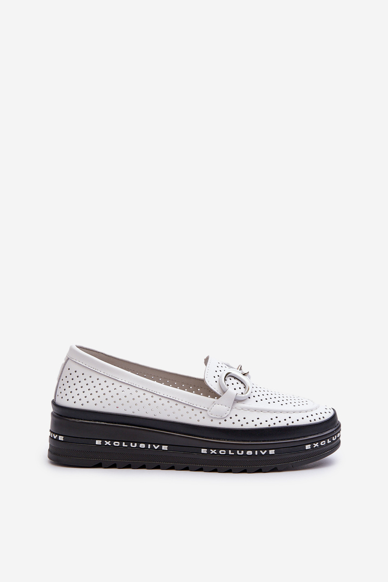 Skórzane Mokasyny Damskie Na Platformie Z Ozdobą S.Barski LR750 Białe
