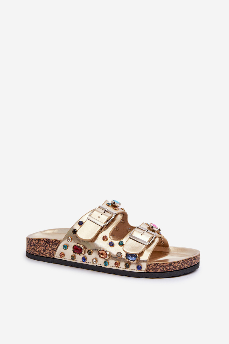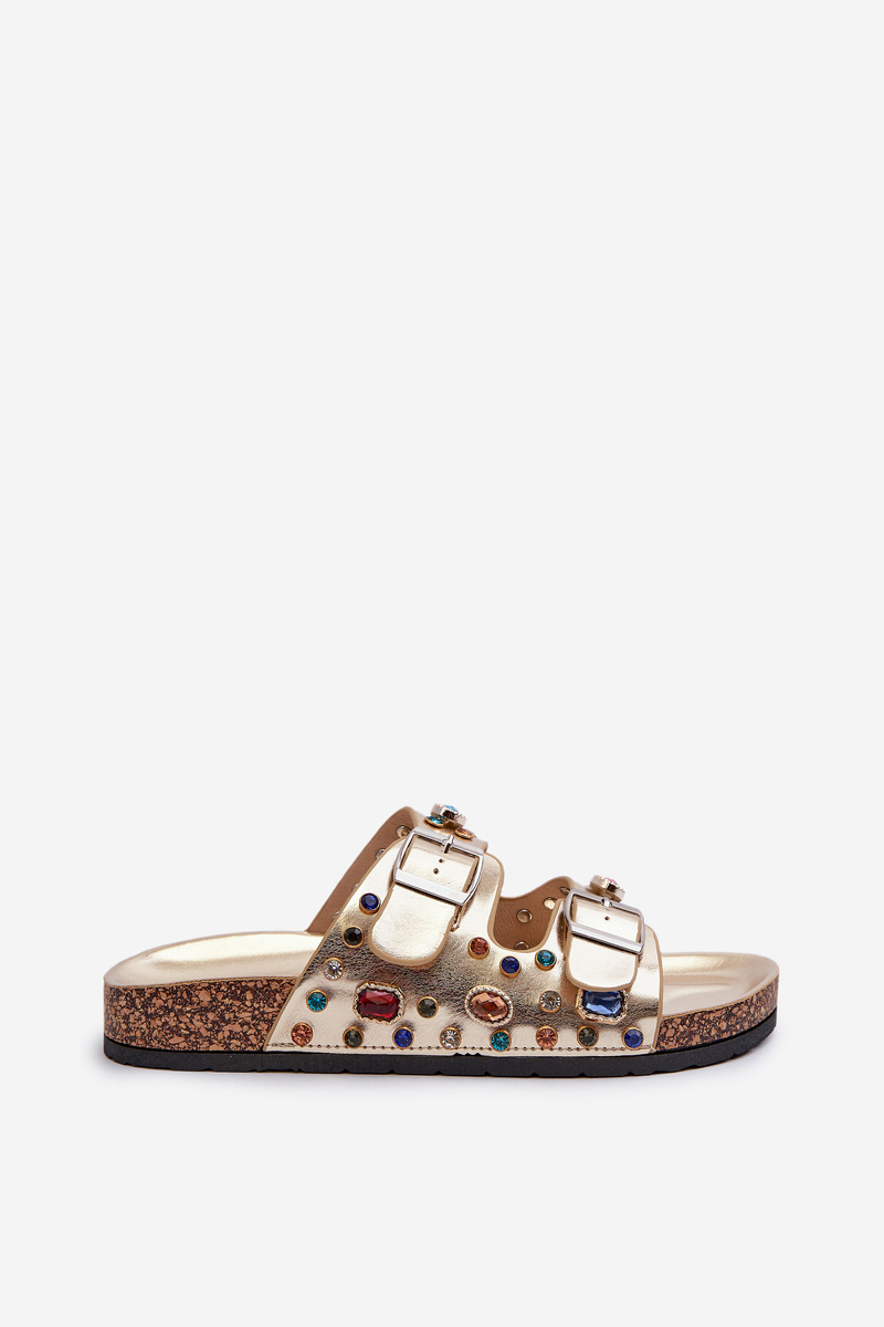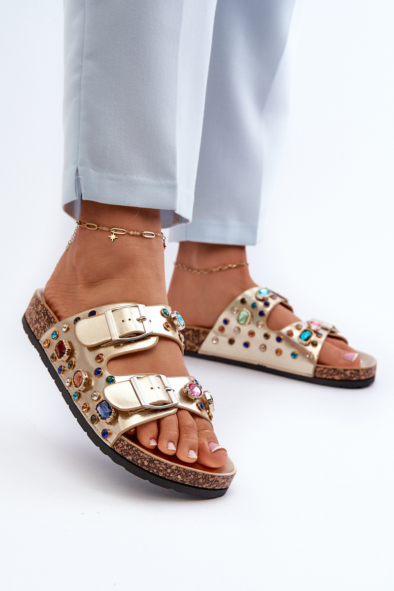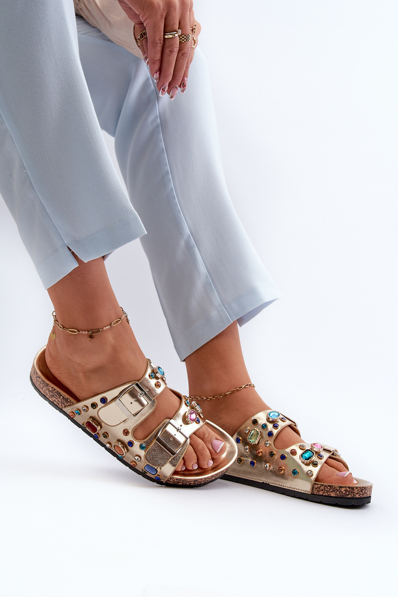 Zdobione Klapki Damskie Z Klamrami S.Barski MY121 Złote