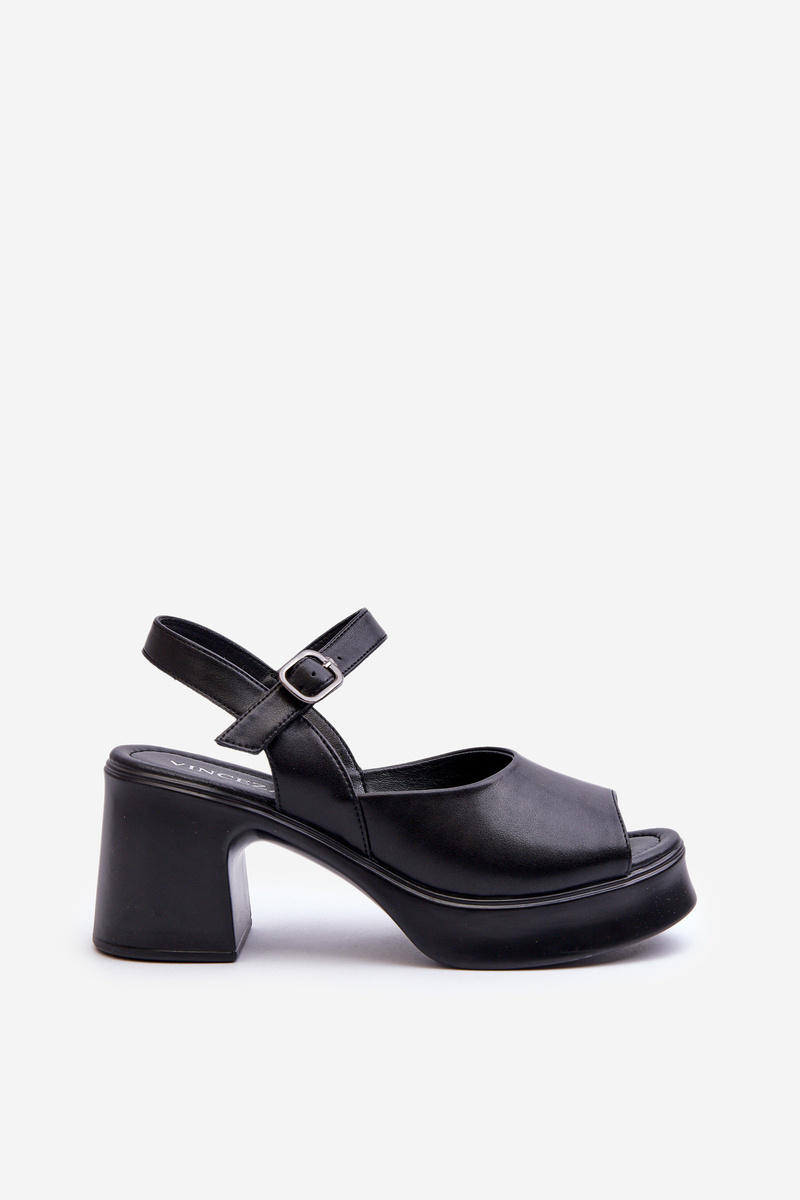 Skórzane Sandały Damskie Na Obcasie Vinceza 66627 Czarne