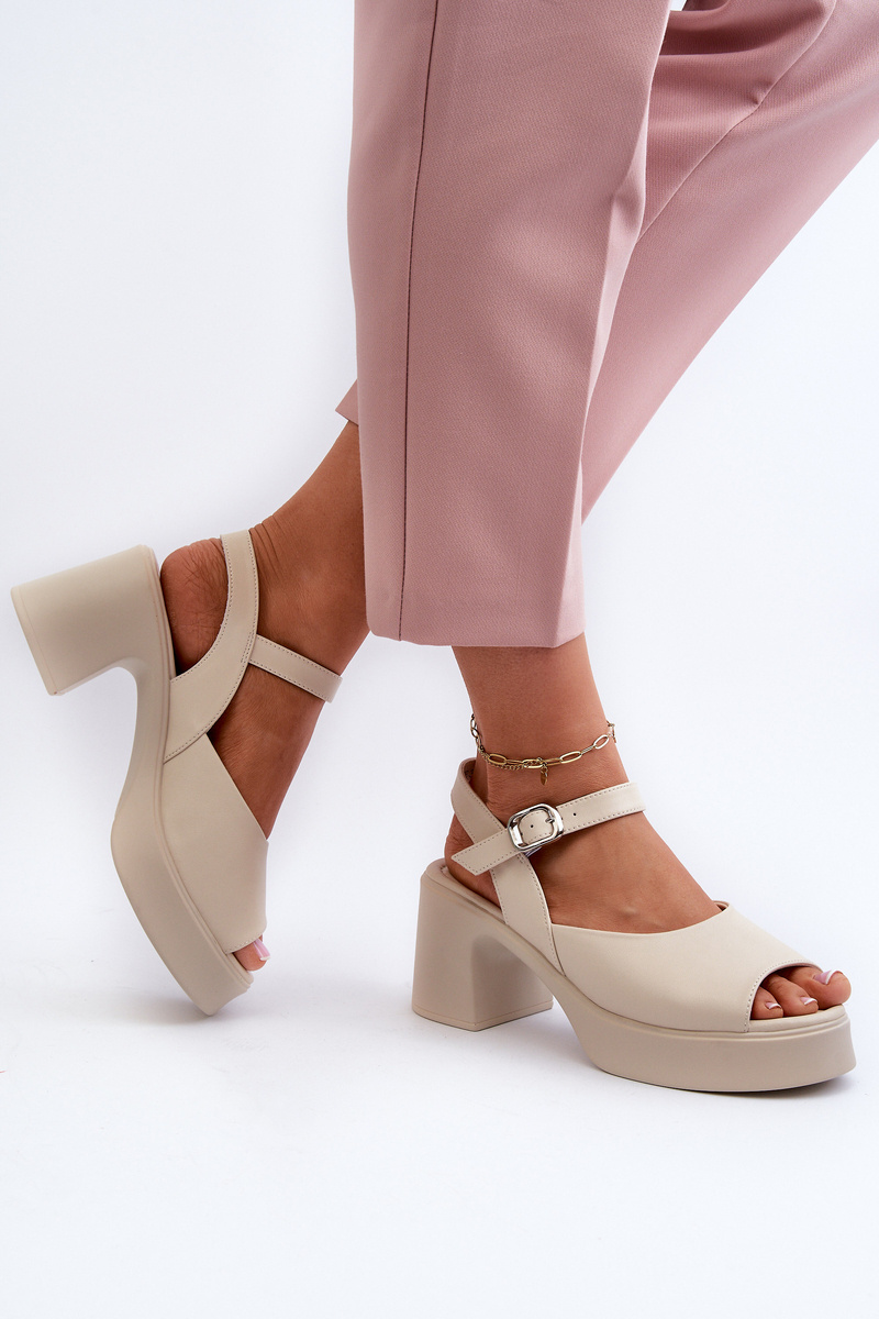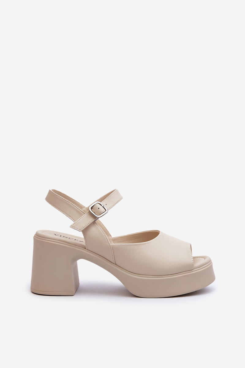 Skórzane Sandały Damskie Na Obcasie Vinceza 66627 Beżowe