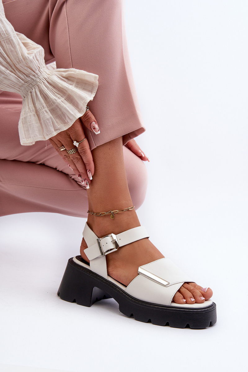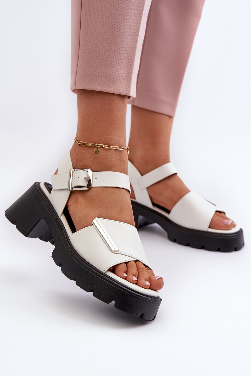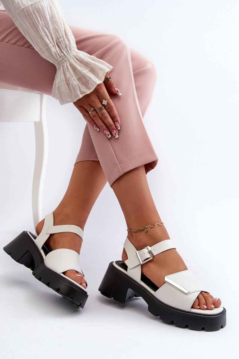 Sandały Damskie Z Eko Skóry Na Obcasie I Platformie Vinceza 36257 Biały