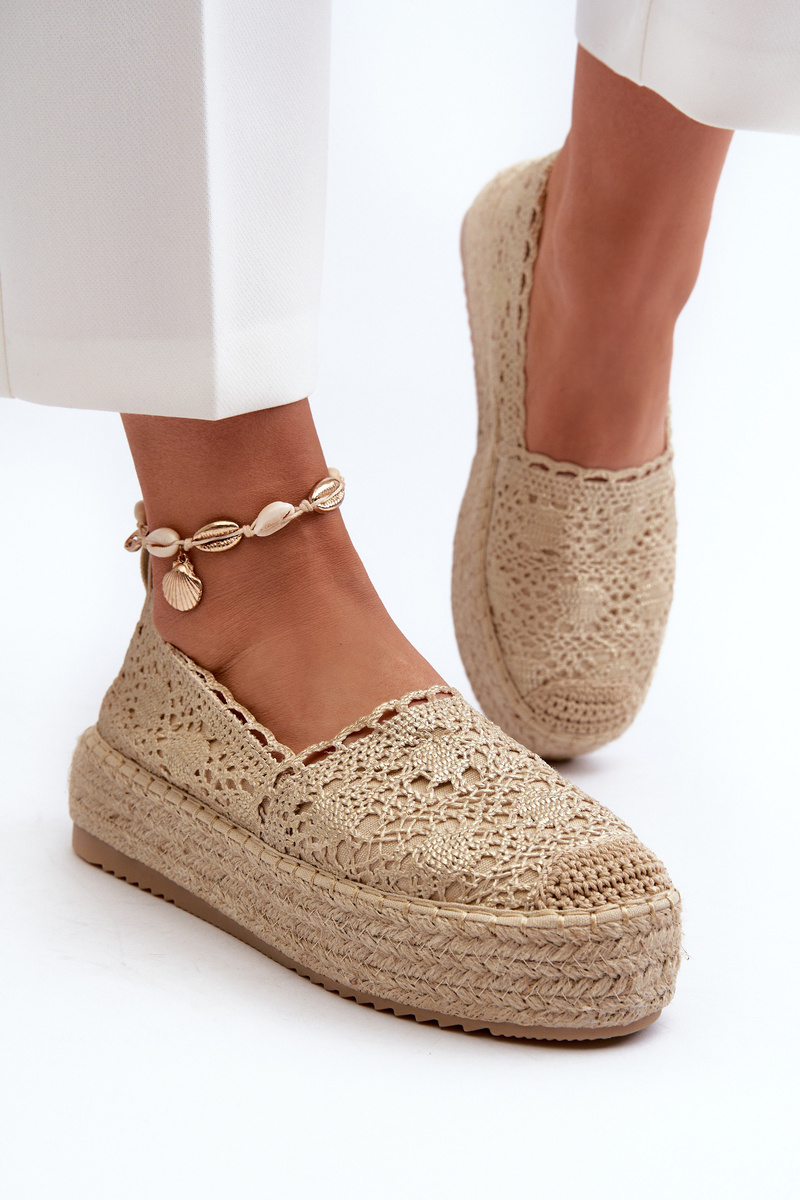 Espadryle Damskie Koronkowe Na Platformie Złote Elarose