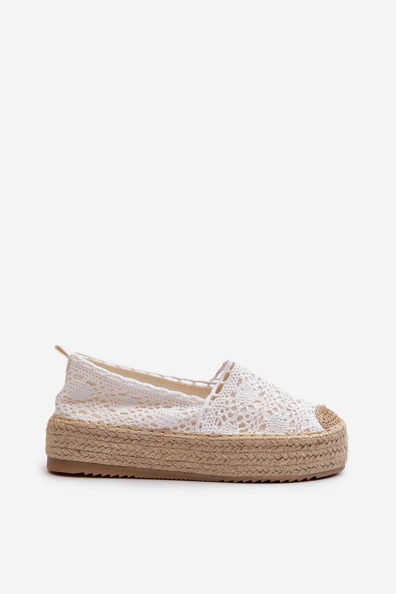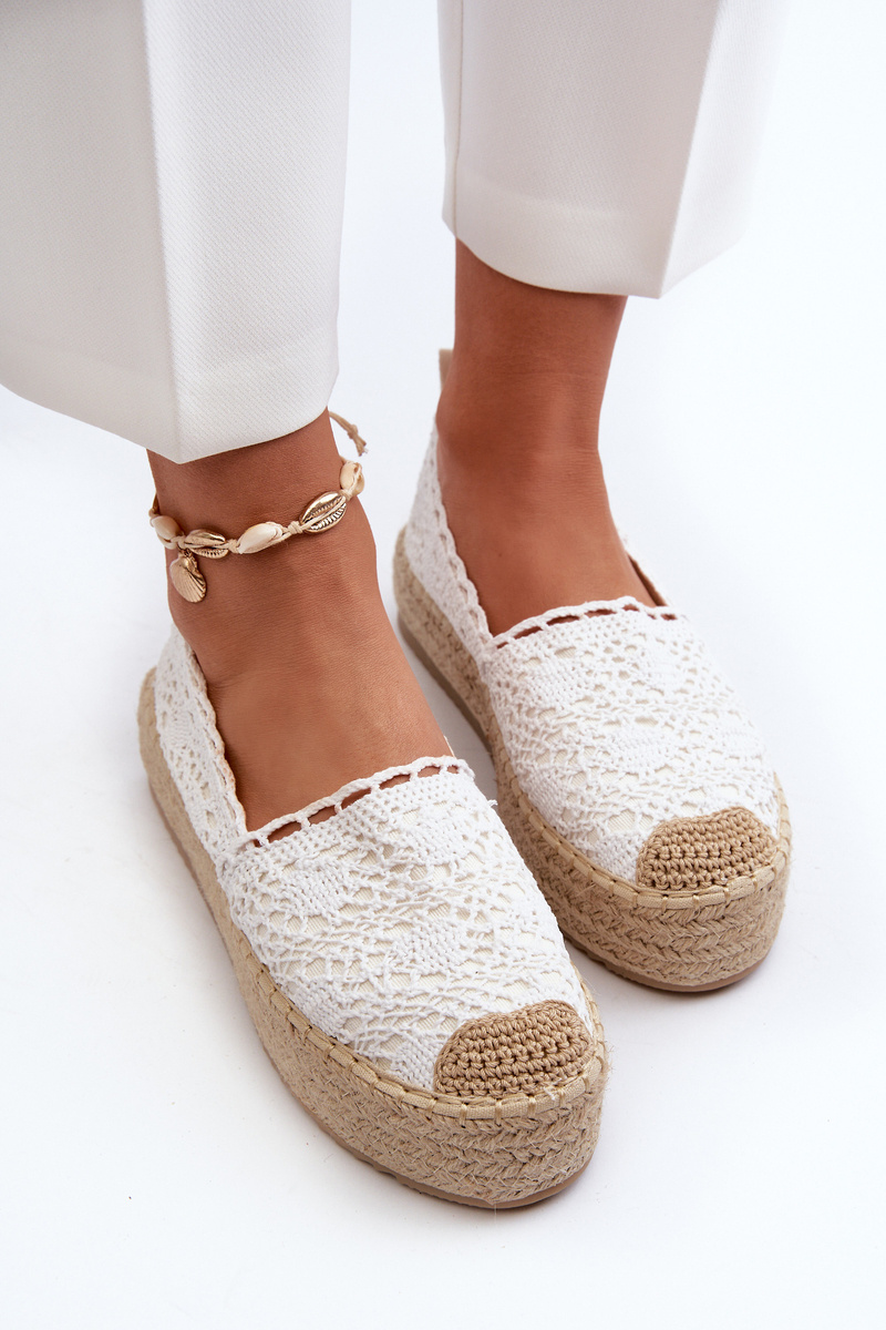 Espadryle Damskie Koronkowe Na Platformie Białe Elarose