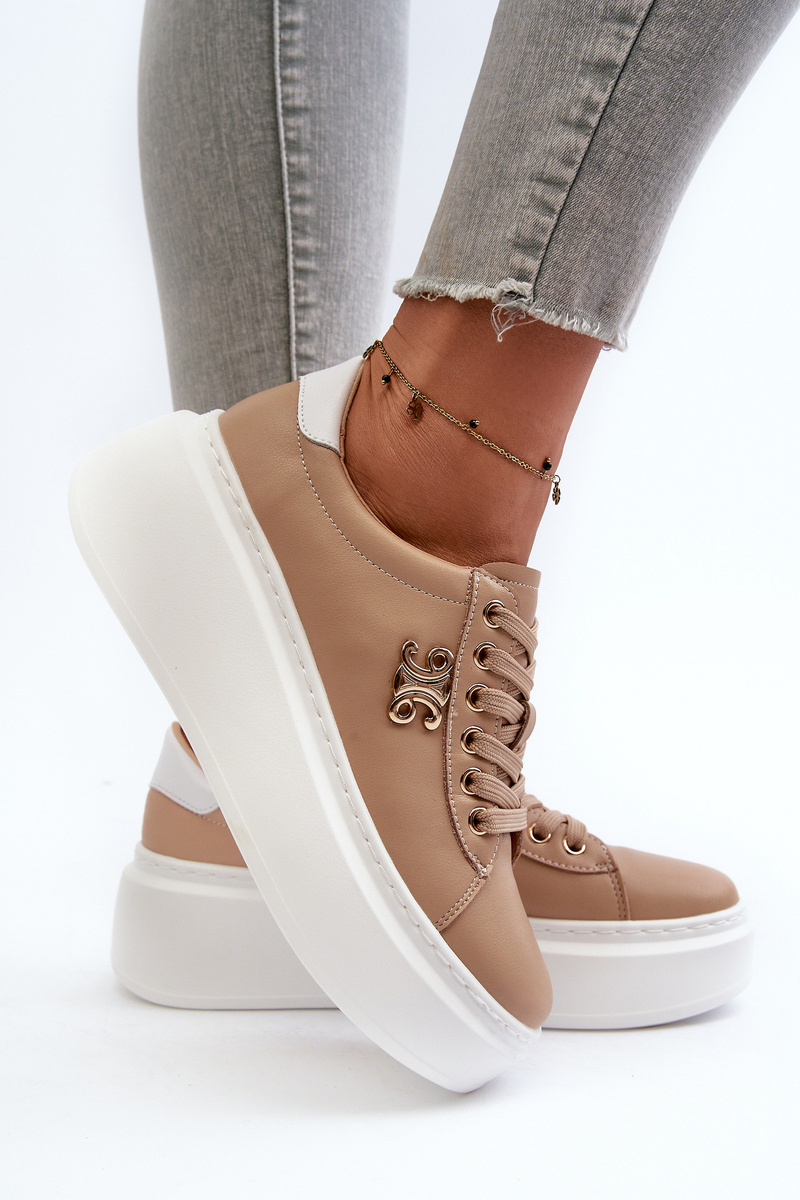 Skórzane Sneakersy Damskie Na Platformie Brązowe Pernalia
