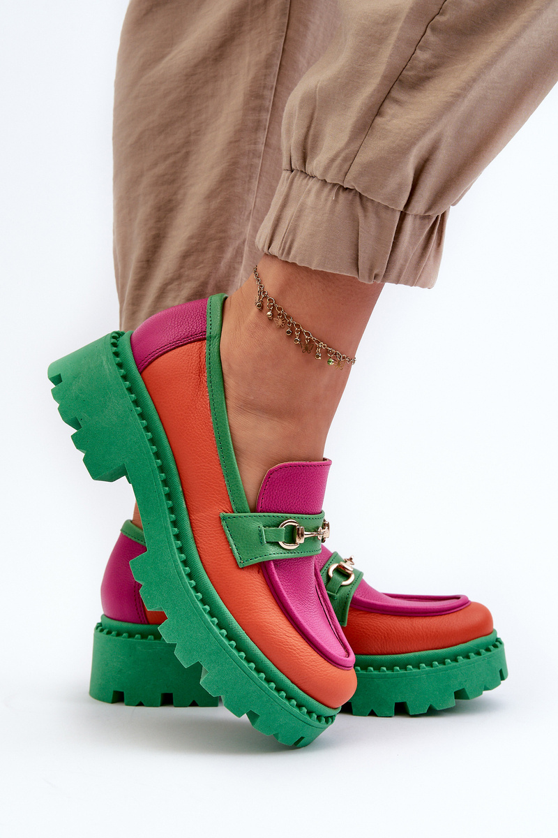 Zazoo 3476 Mokasyny Skórzane Damskie Zielone