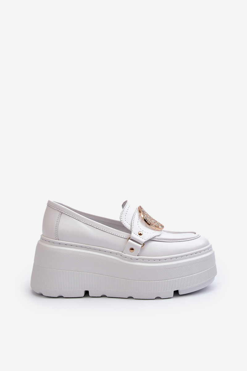 Zazoo 3458 Mokasyny Skórzane Damskie Z Ozdobą Białe