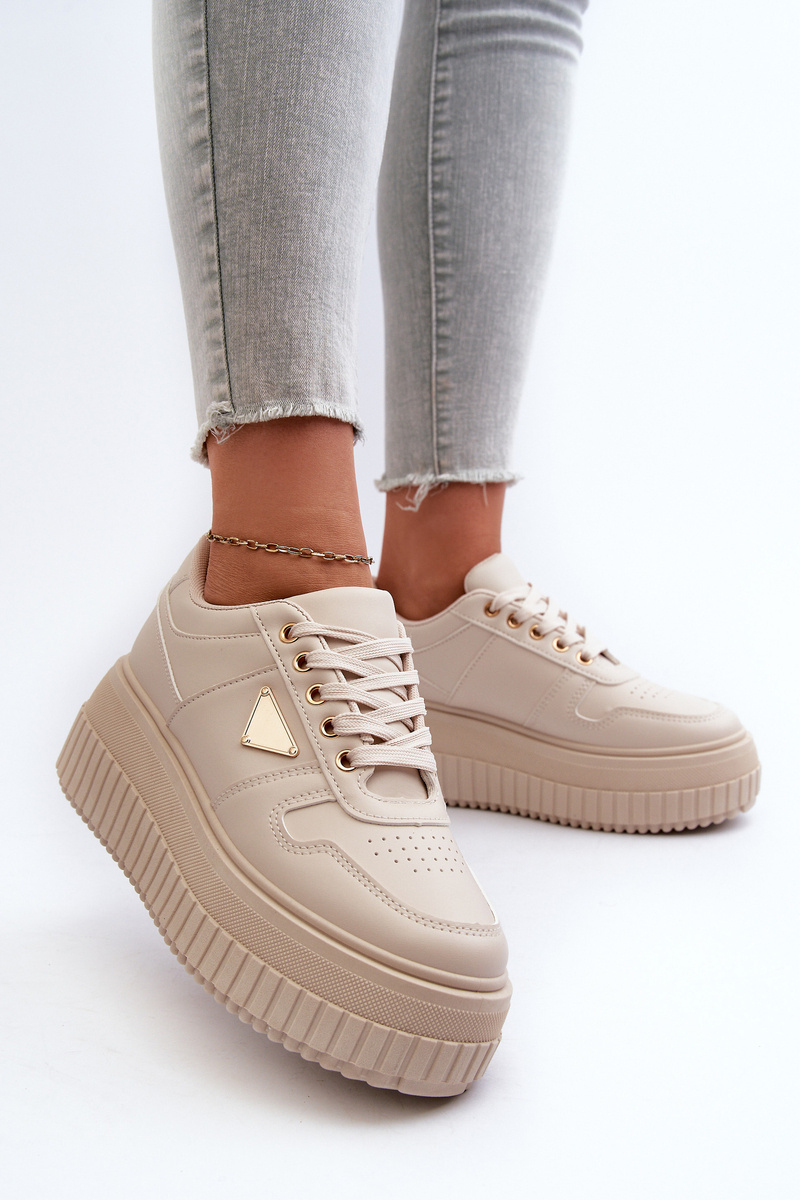 Sneakersy Damskie Z Eko Skóry Na Masywnej Platformie Jasnobeżowe Chrisstin